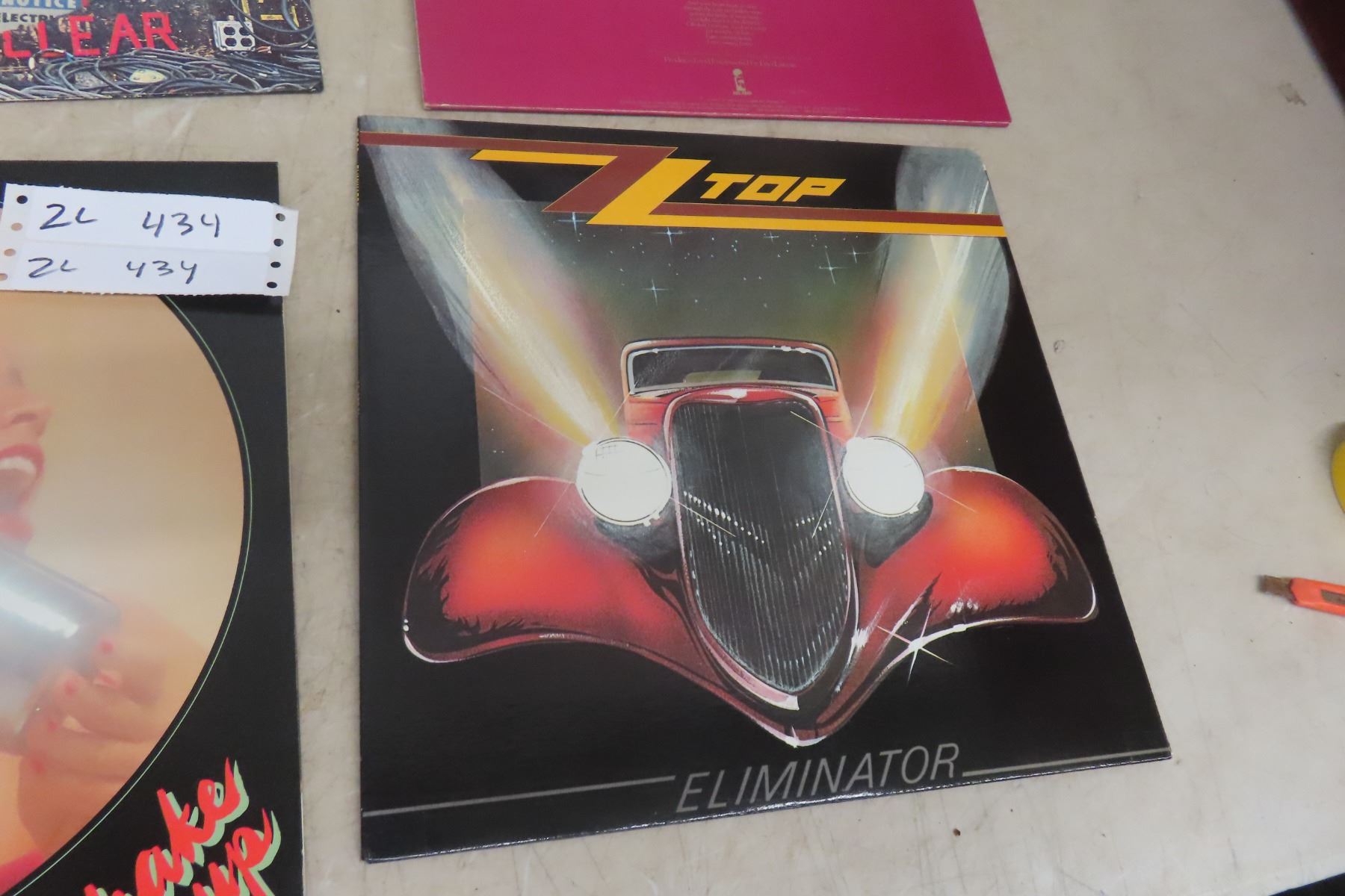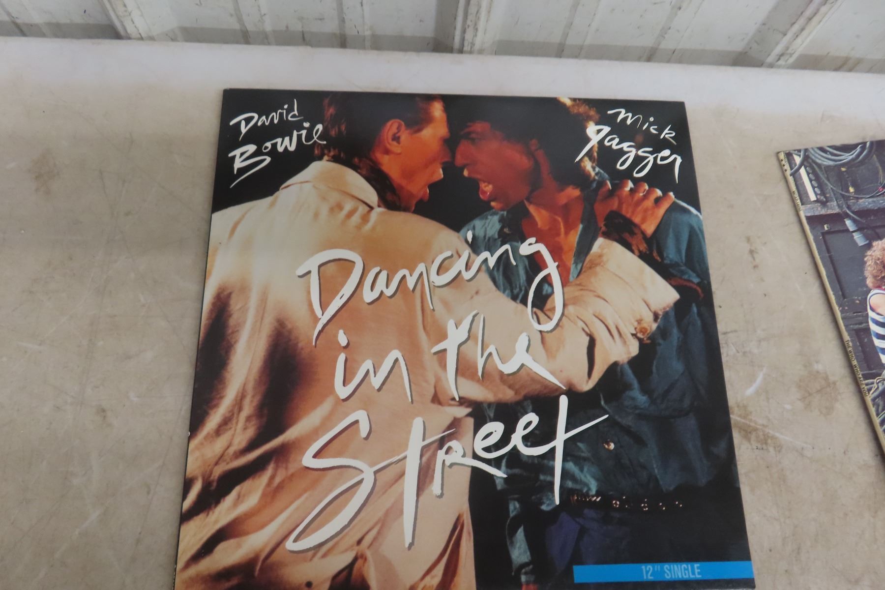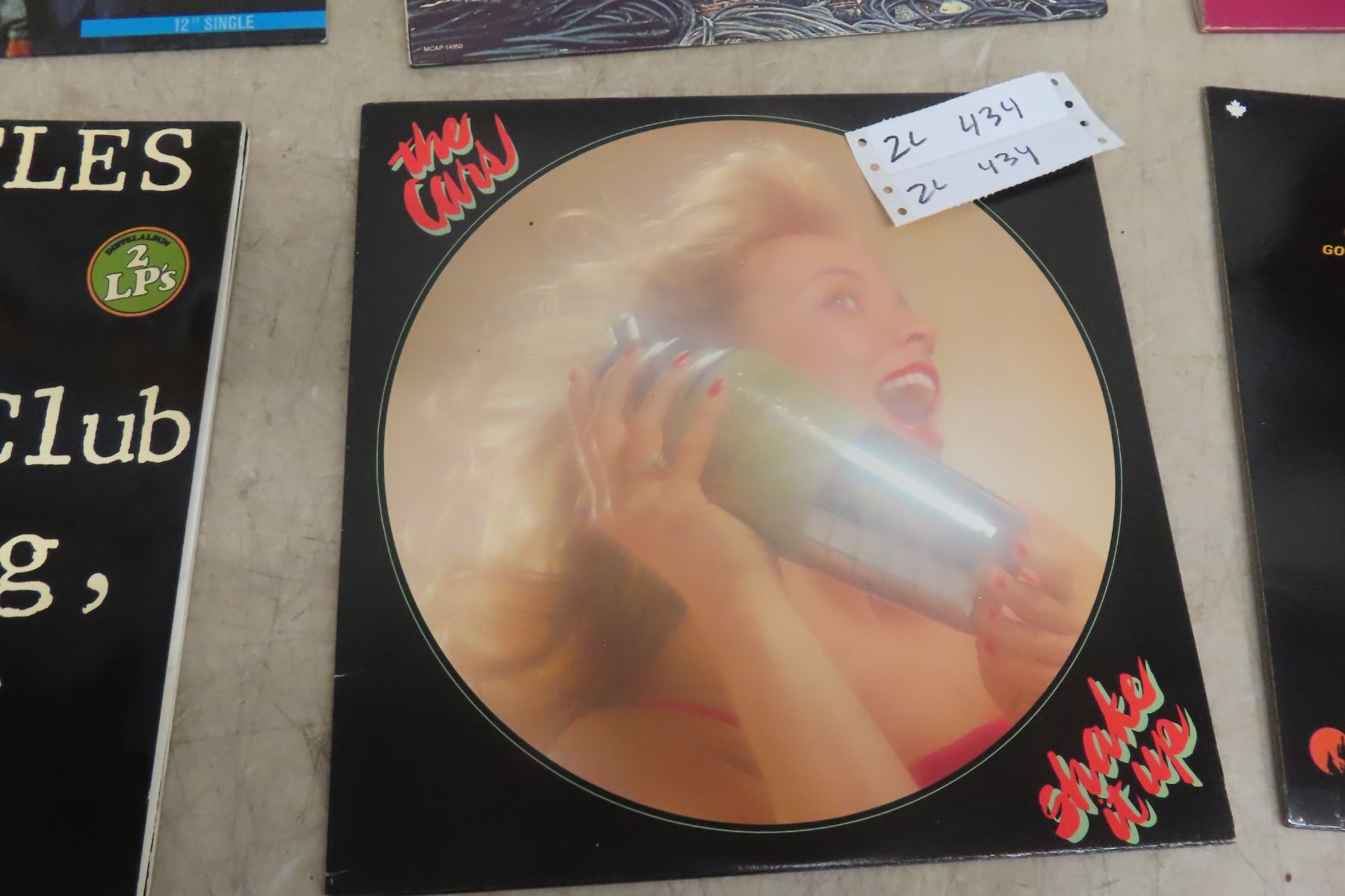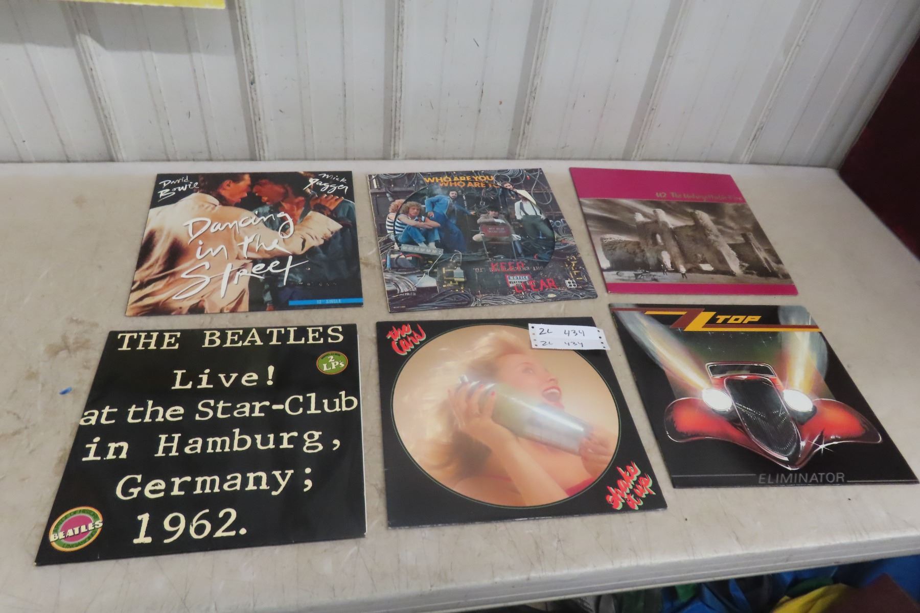 6 Rock and Roll Records: ZZ Top Eliminator, U2 Unforgettable Fire, Cars Shake It Up, Who Are You, Beatles, David Bowie/Mick Jagger, Dancing in the Street.