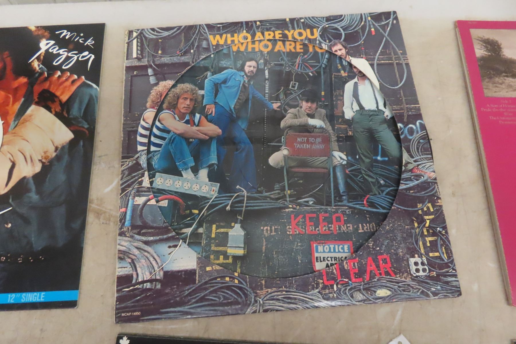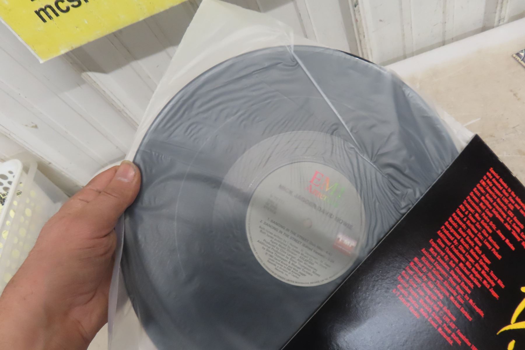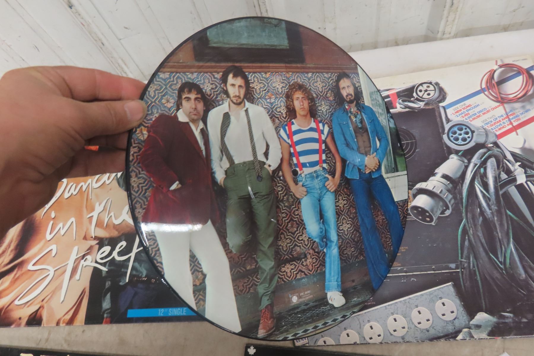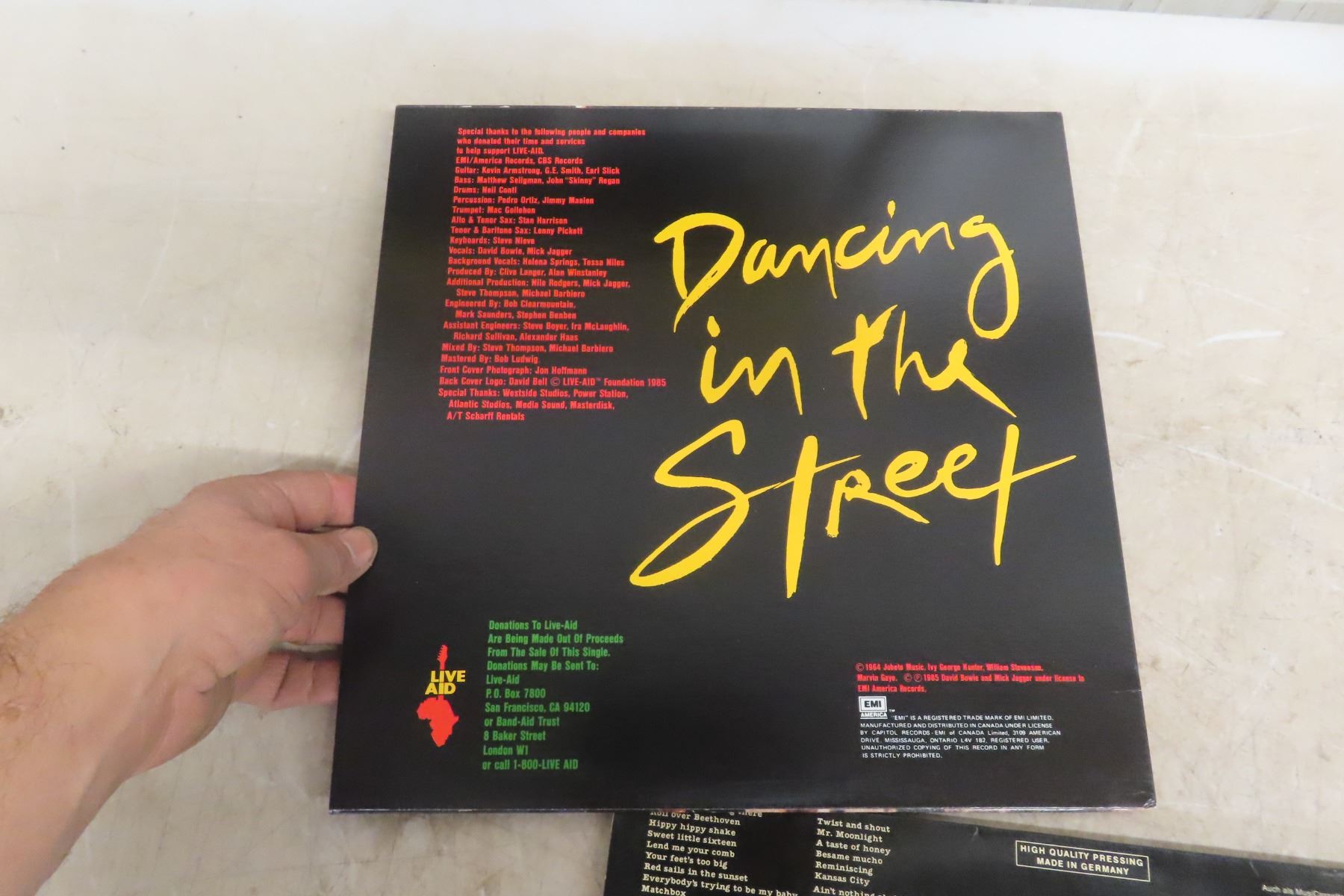 6 Rock and Roll Records: ZZ Top Eliminator, U2 Unforgettable Fire, Cars Shake It Up, Who Are You, Beatles, David Bowie/Mick Jagger, Dancing in the Street.