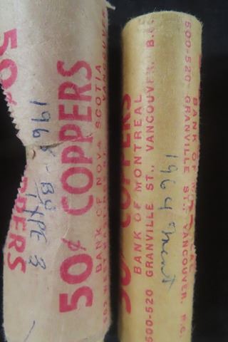 6 Rolls Canada 1 Cent Coins 1962, (2) 1964, (2) 1965- All Mint