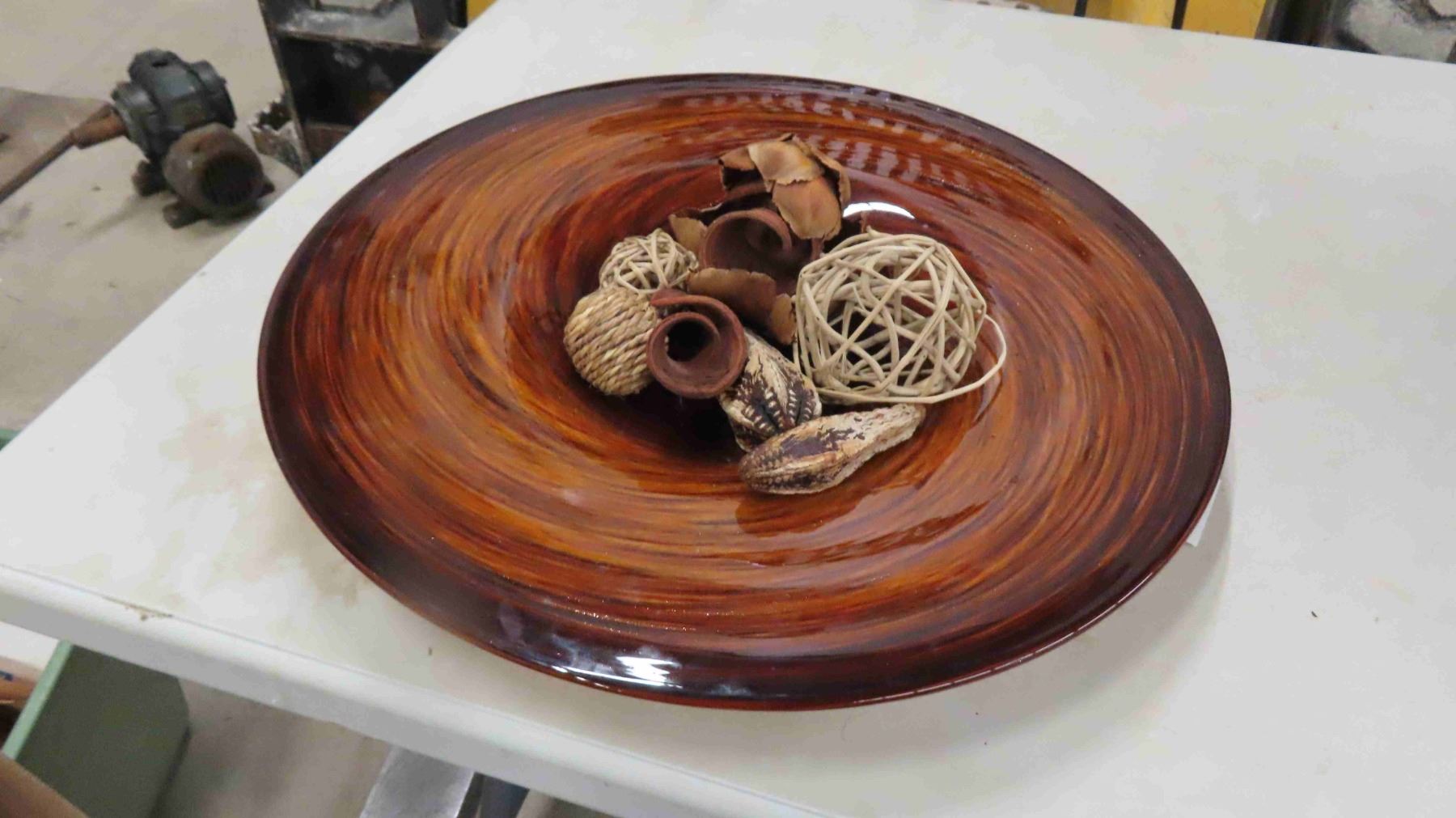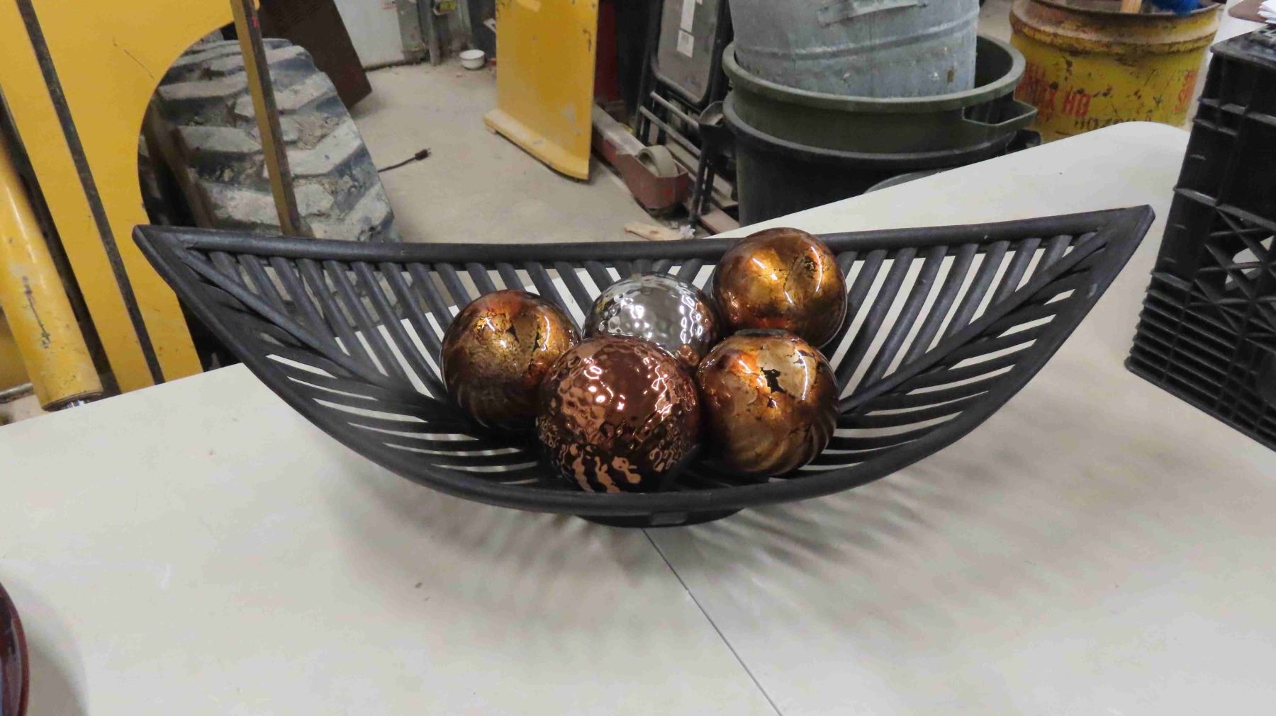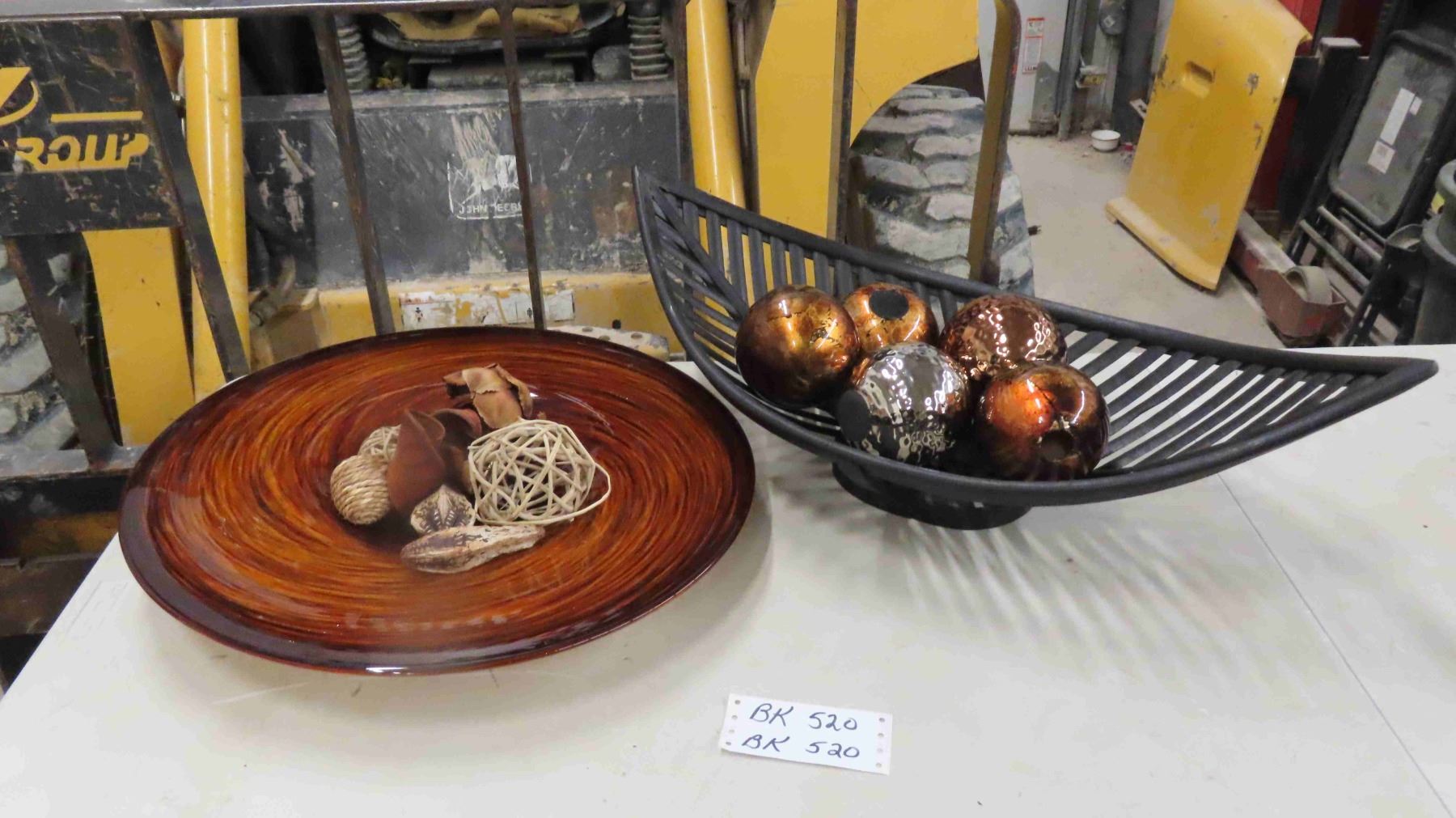 6 Round Decorative Table Centerpiece with Natural Contents Including Rattan Balls & Giant Leaf Shaped Table Centerpiece with (5) 4" Glass Mosaic Orbs/ Balls