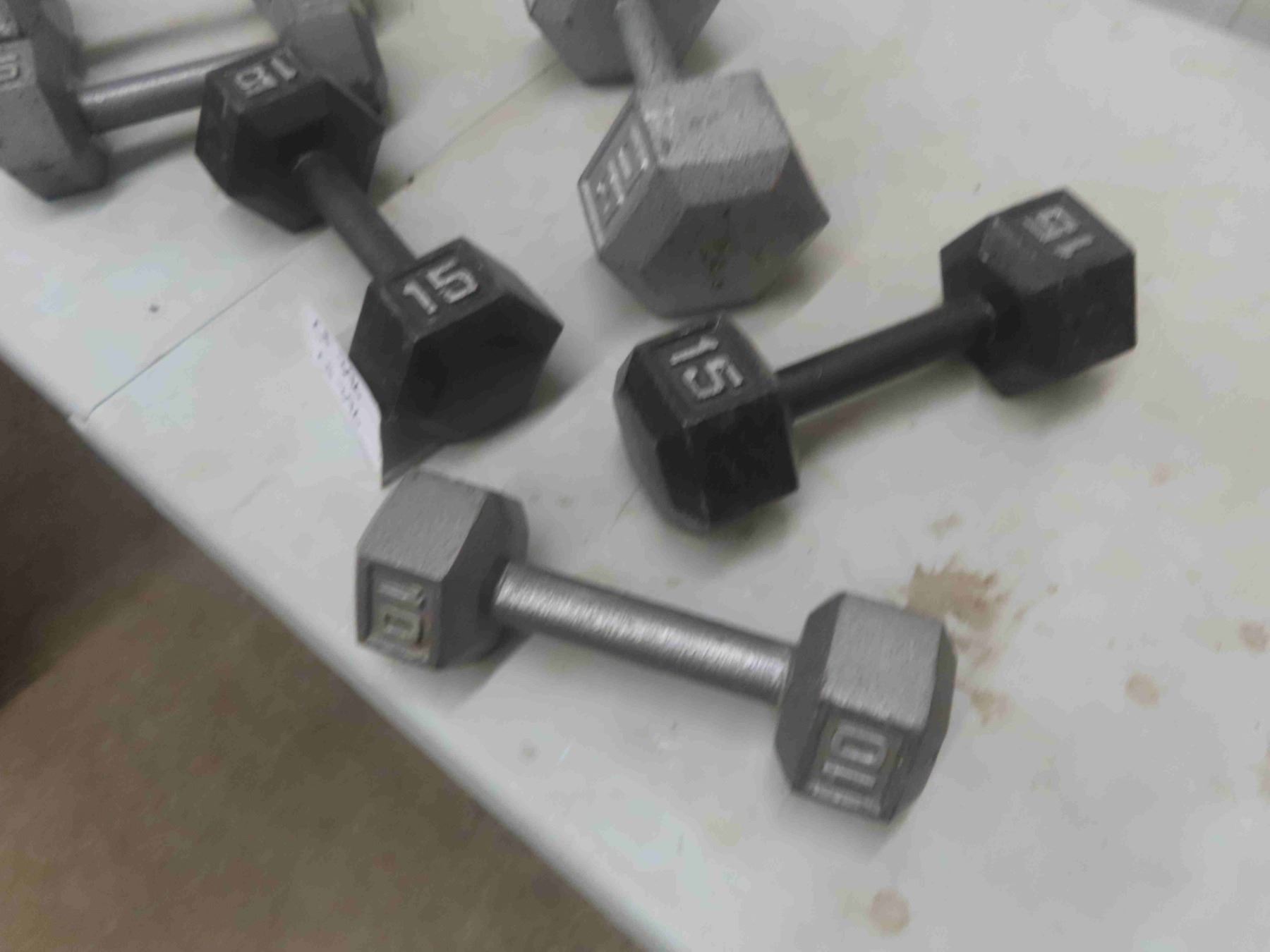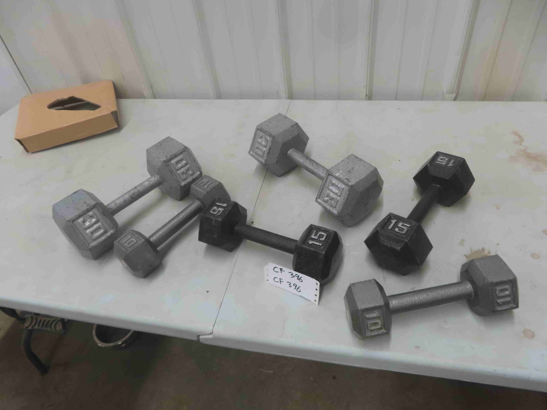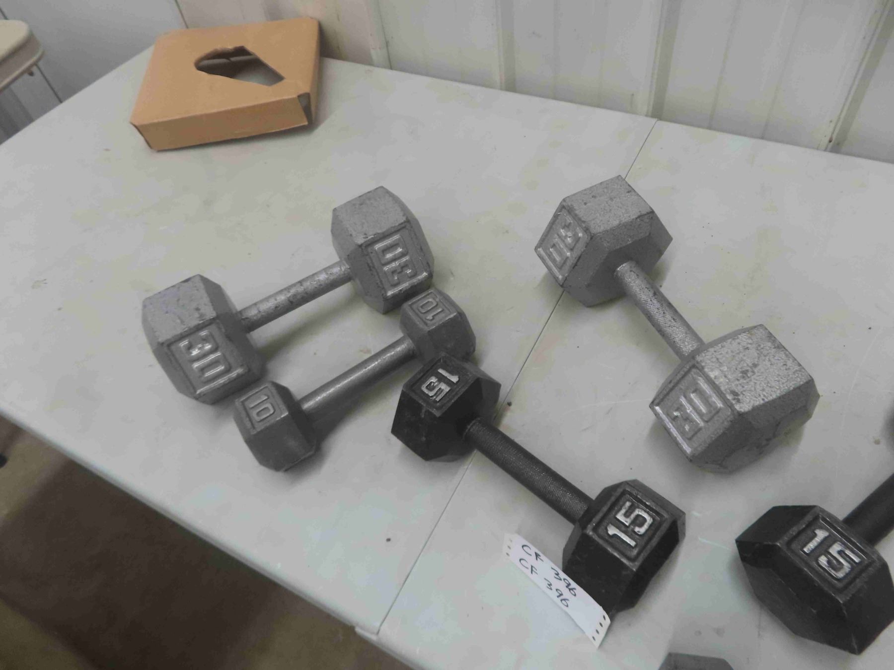 6 Steel Dumbbell Weights ; (2) 30 lb, (2) 15lb, (2) 10lb