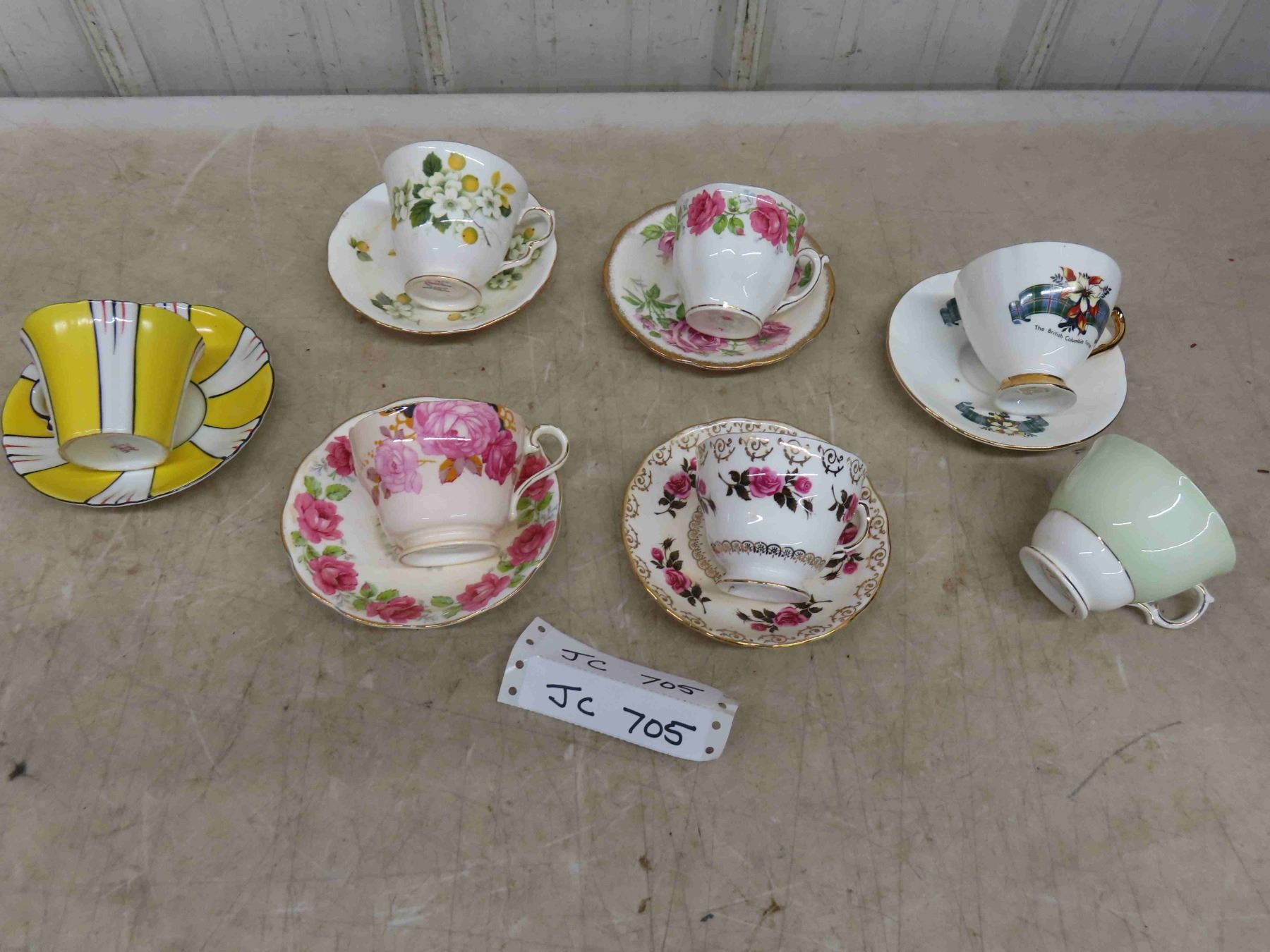 6 Tea Cups and Saucers : Aynsley, Colclough, Queen Anne & Others