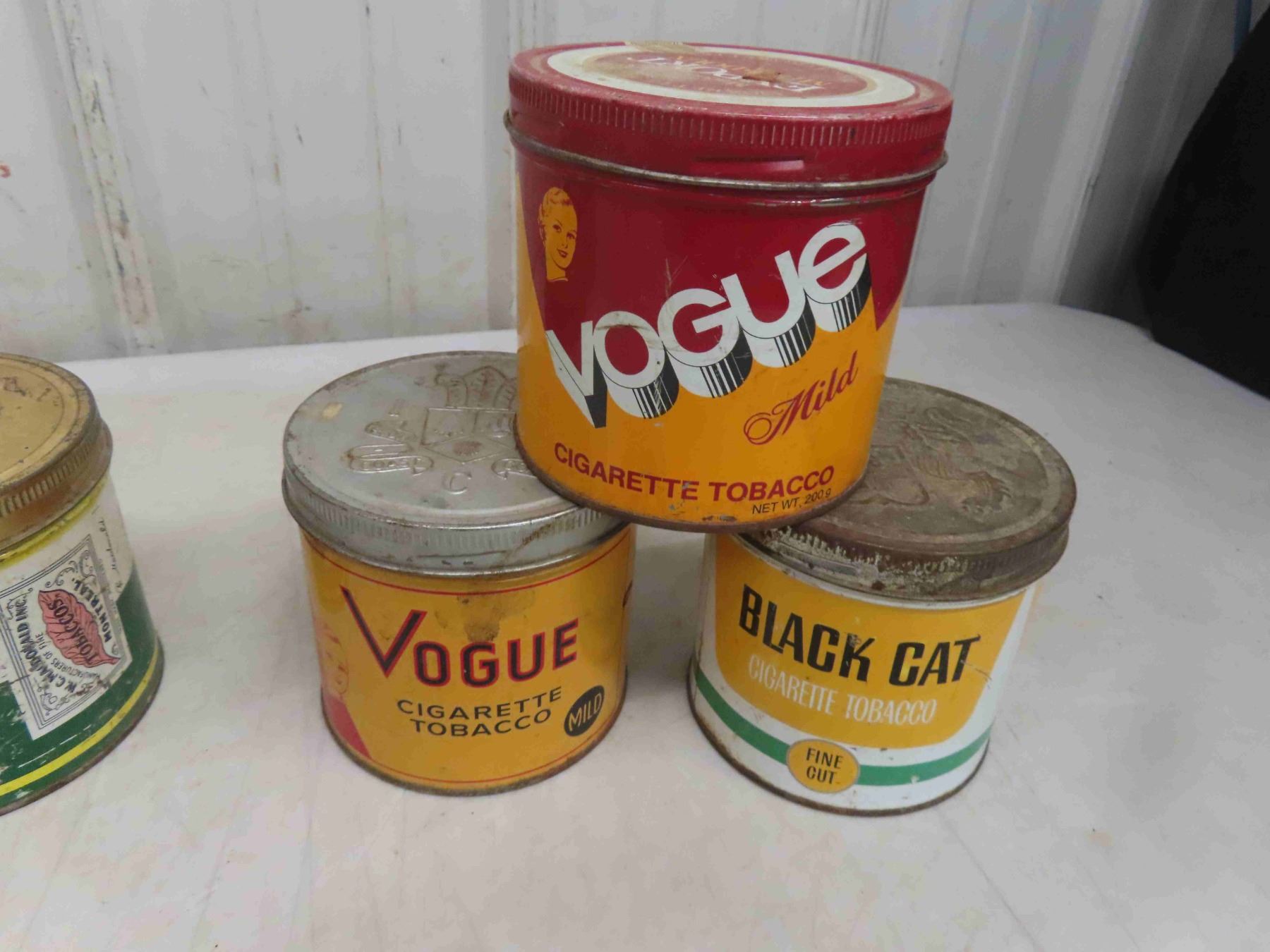 6 Tobacco Tins : Black Cat, Vogue, MacDonald,