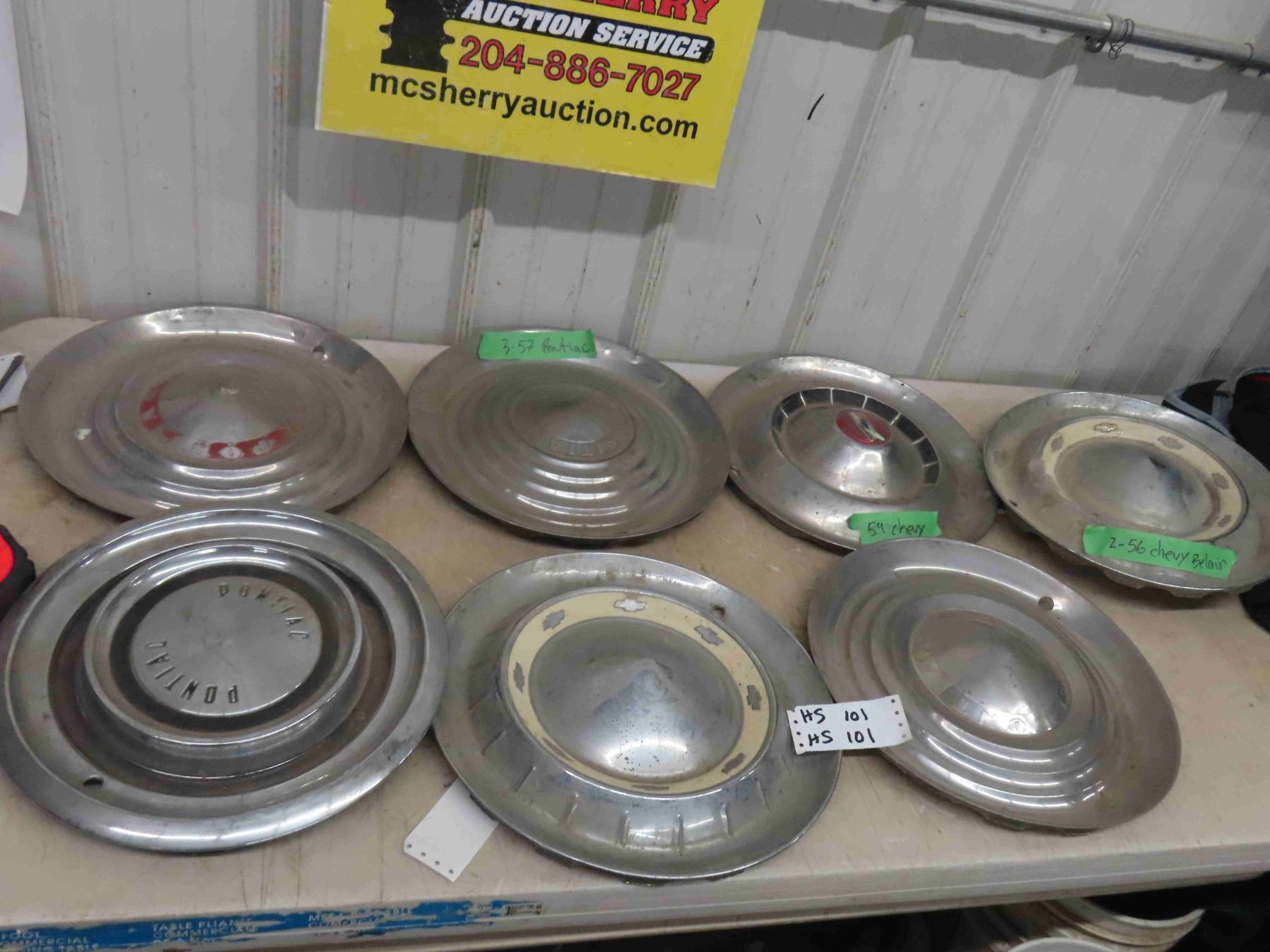 6 Vintage Hubcaps ; (3) 57 Pontian, (2) 56 Chevy Belair, 54 Chevy