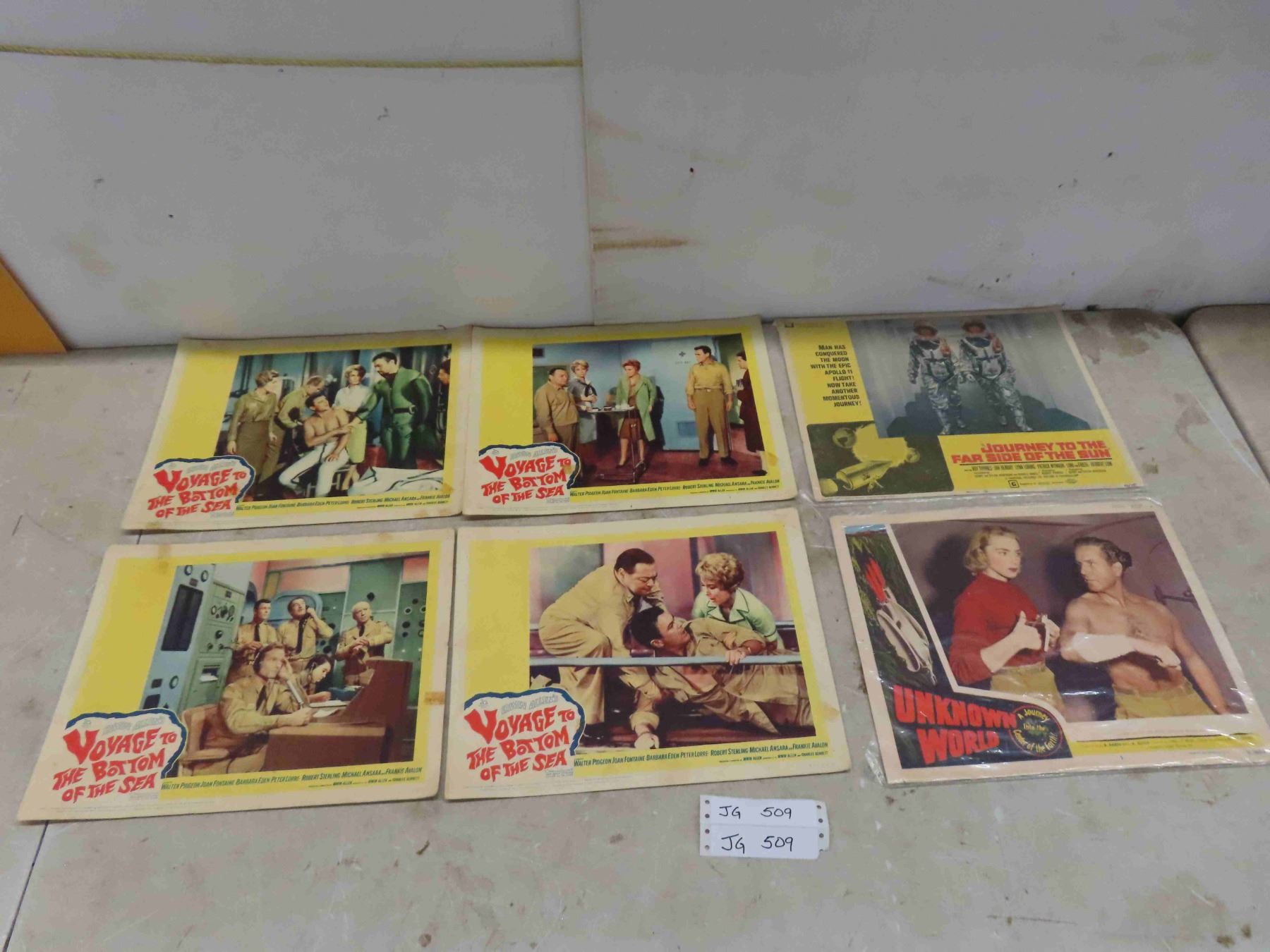6 Vintage Movie Theatre Lobby Cards 11'' x 14'' , 4 From Voyage to the Bottom of the Sea 1961 , Journey to the Far Side of the Sun 1969 , The Unknown World 1951