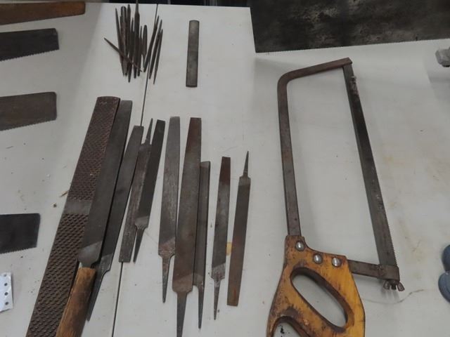 6 Vintage Saws, 12 Files, Mitre Saw & Meat Saw