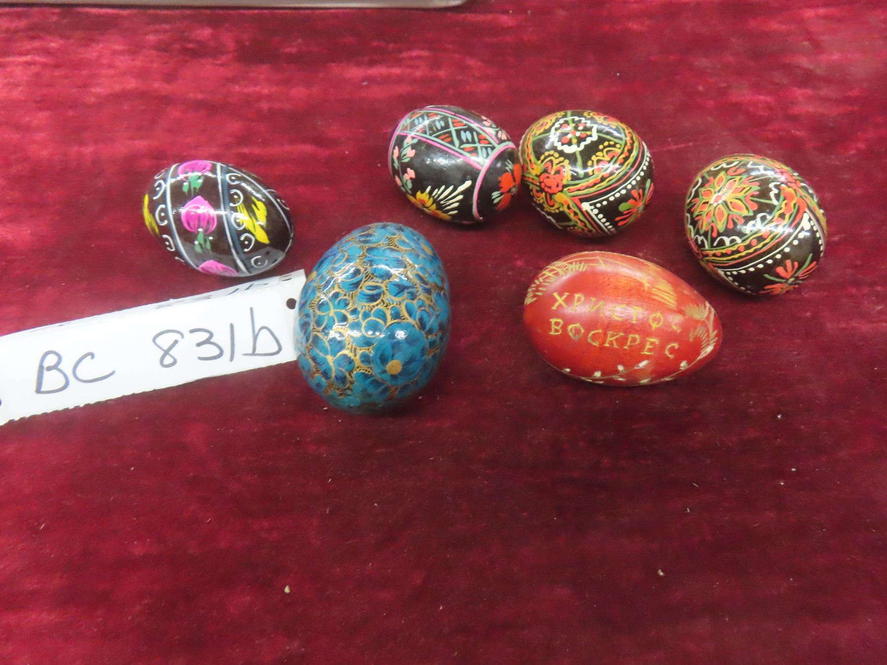 6 Wooden Painted Eggs