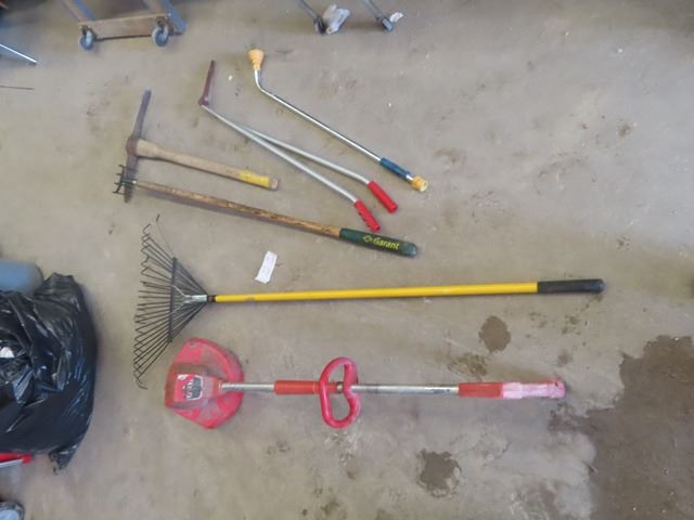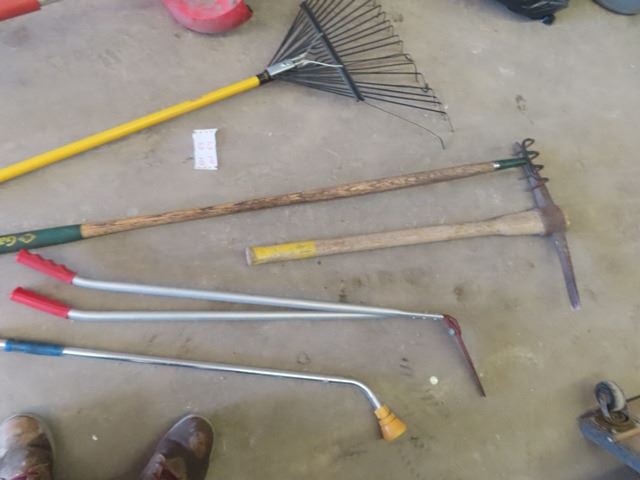 6 Yard Tools ; Rake , Pick, Clipper, Electric Weed Eater, Pruners