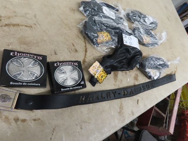 6 new Leather Biker Head Wraps, 2 New Chopper Belt Buckles, New Harley Davidson Belt & Buckle