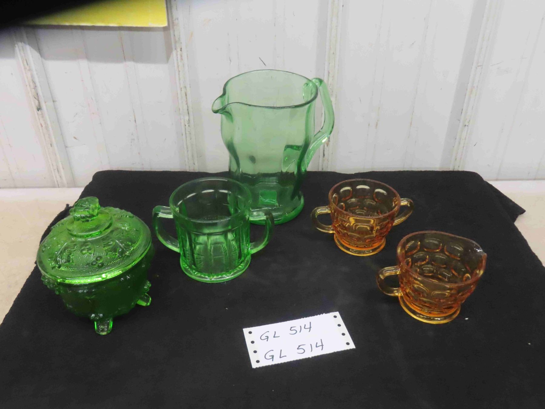 6 pcs Colored Glass Pitcher, Cream, Sugar Bowl