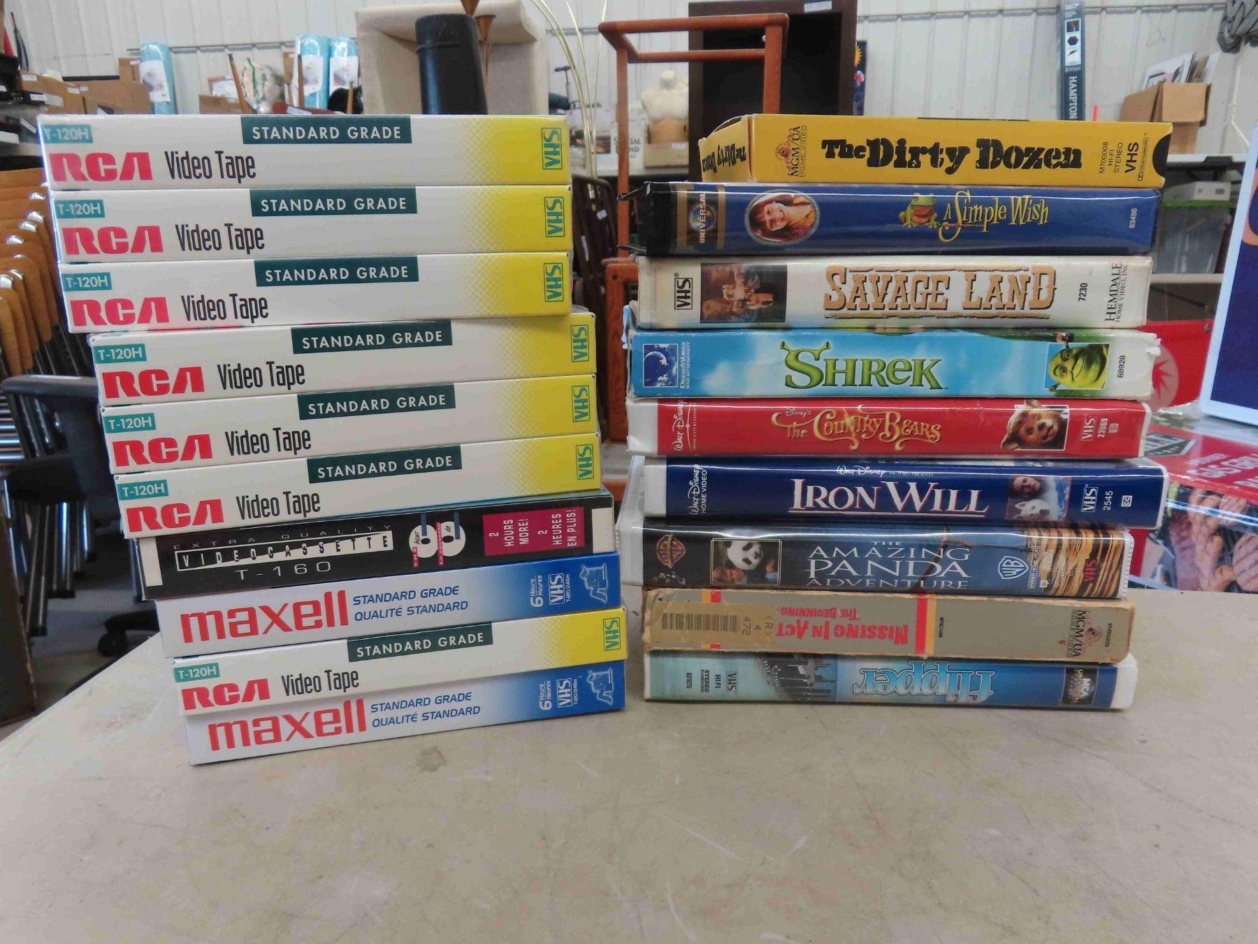 65 VHS Tapes: The Fugitive, POW, Hell Cats, Snow Dogs, 10 New Blank Tapes