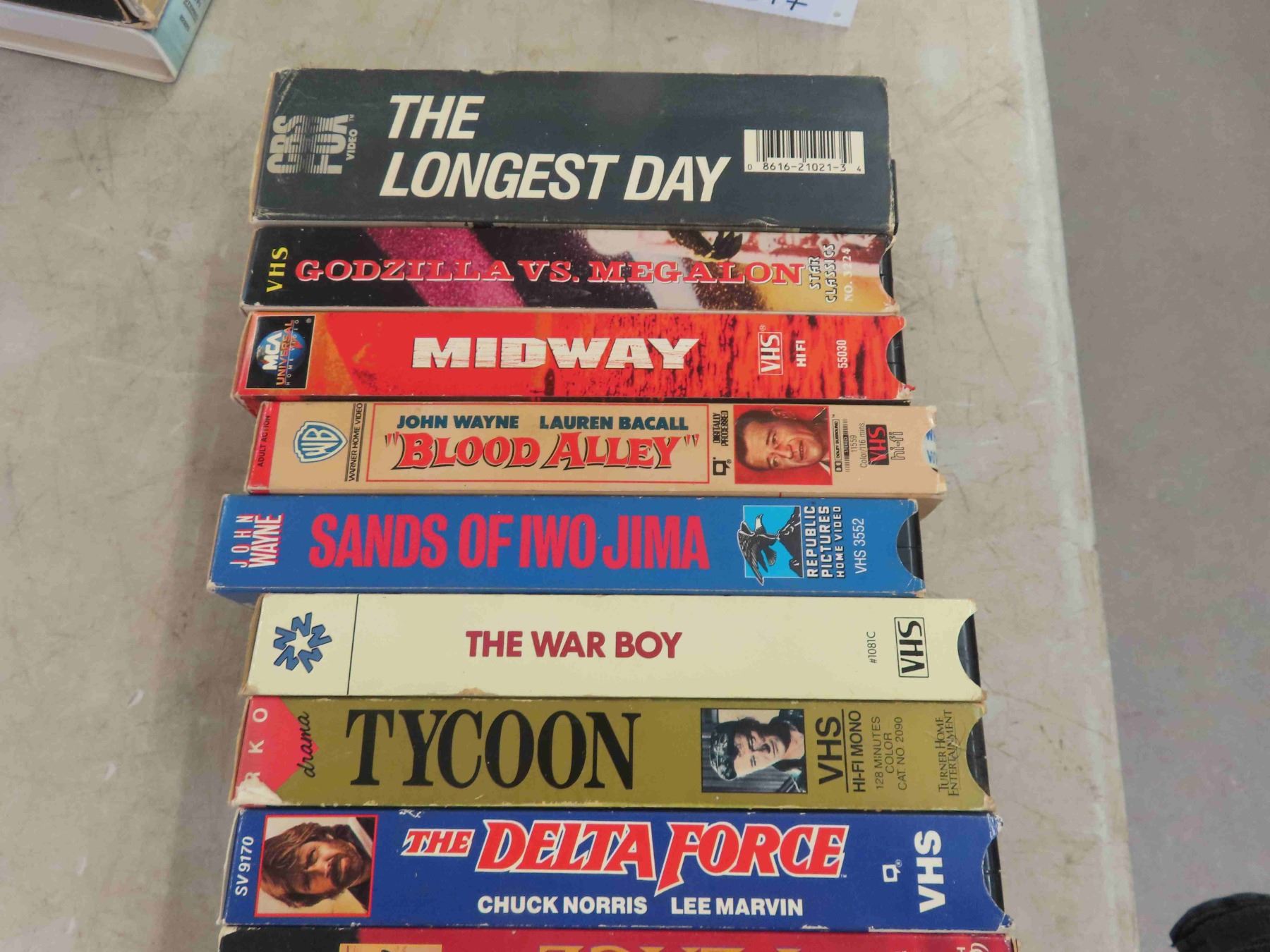 65 VHS Tapes: The Fugitive, POW, Hell Cats, Snow Dogs, 10