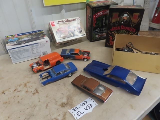 68 Dodge Dart Model, 29 Ford Model, Misc Models & 2 Jack Daniels Tins