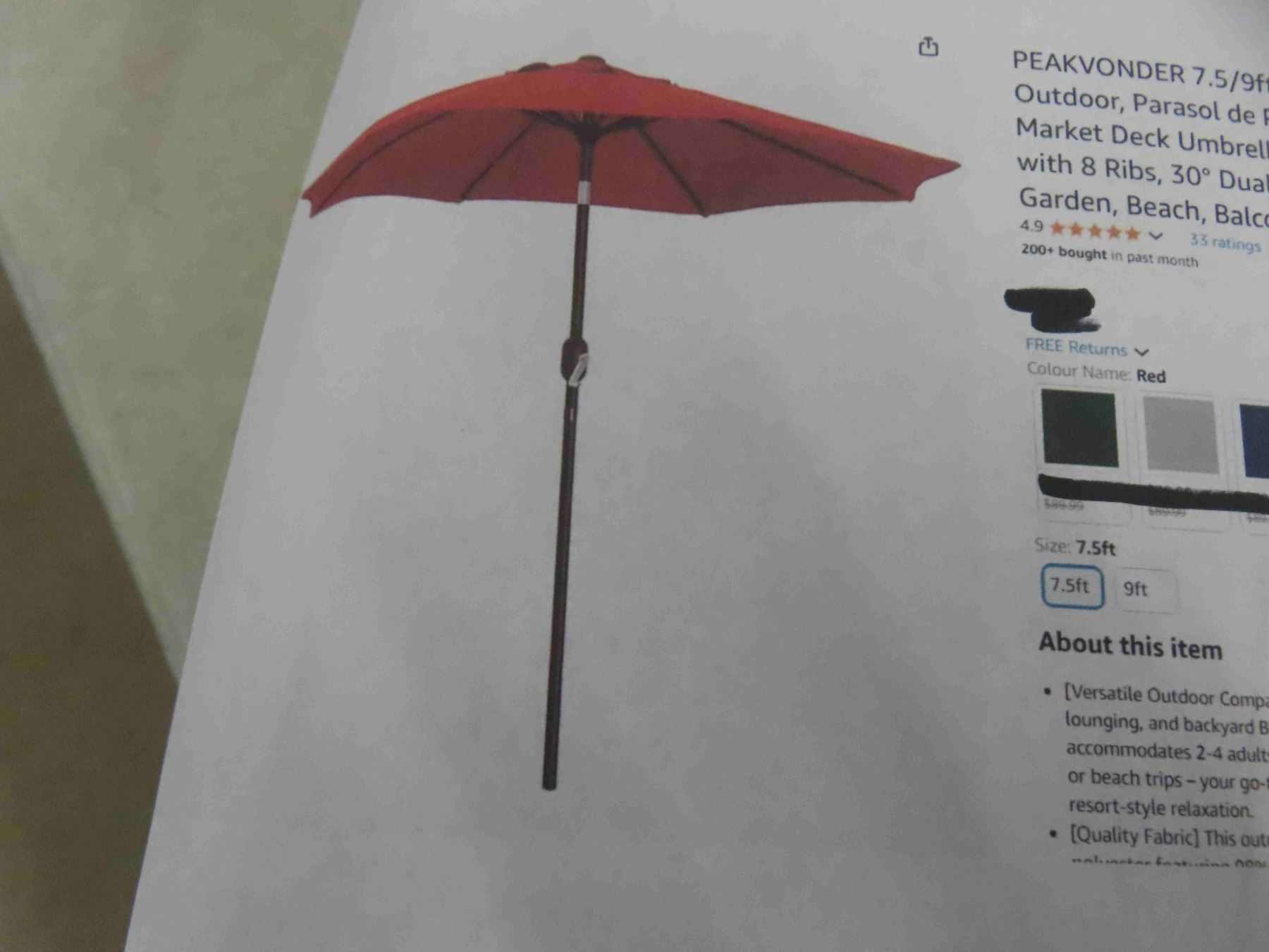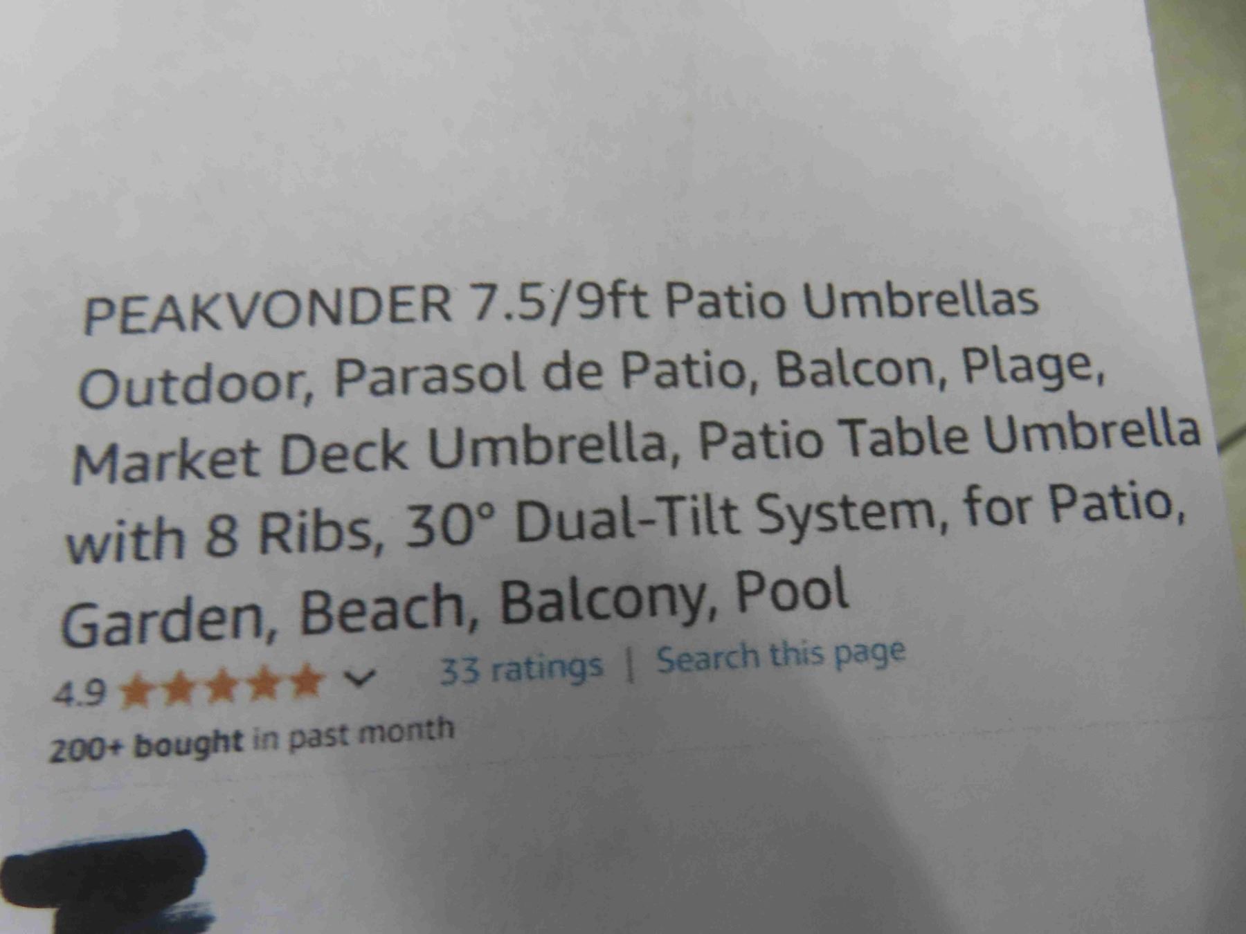 7.5/9' patio umbrellas outdoor, parasol de patio, balcon, plage, market deck umbrella, patio table umbrella with 8 ribs, 30 degree dual-tilt system, for patio, garden, beach, balcony, pool. New or store return