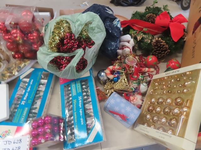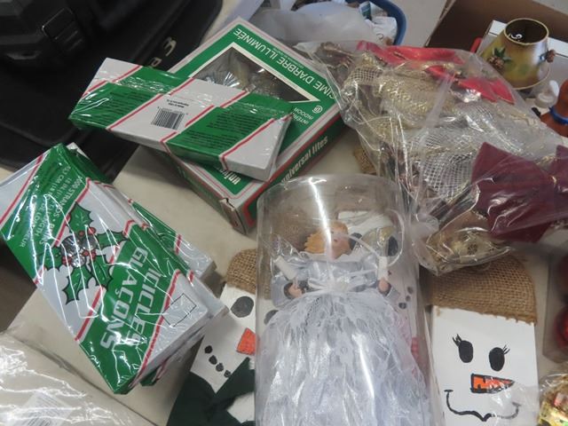 7.5' Christmas Tree in Box, Mini Lights, Ornaments Wreath, Decorations