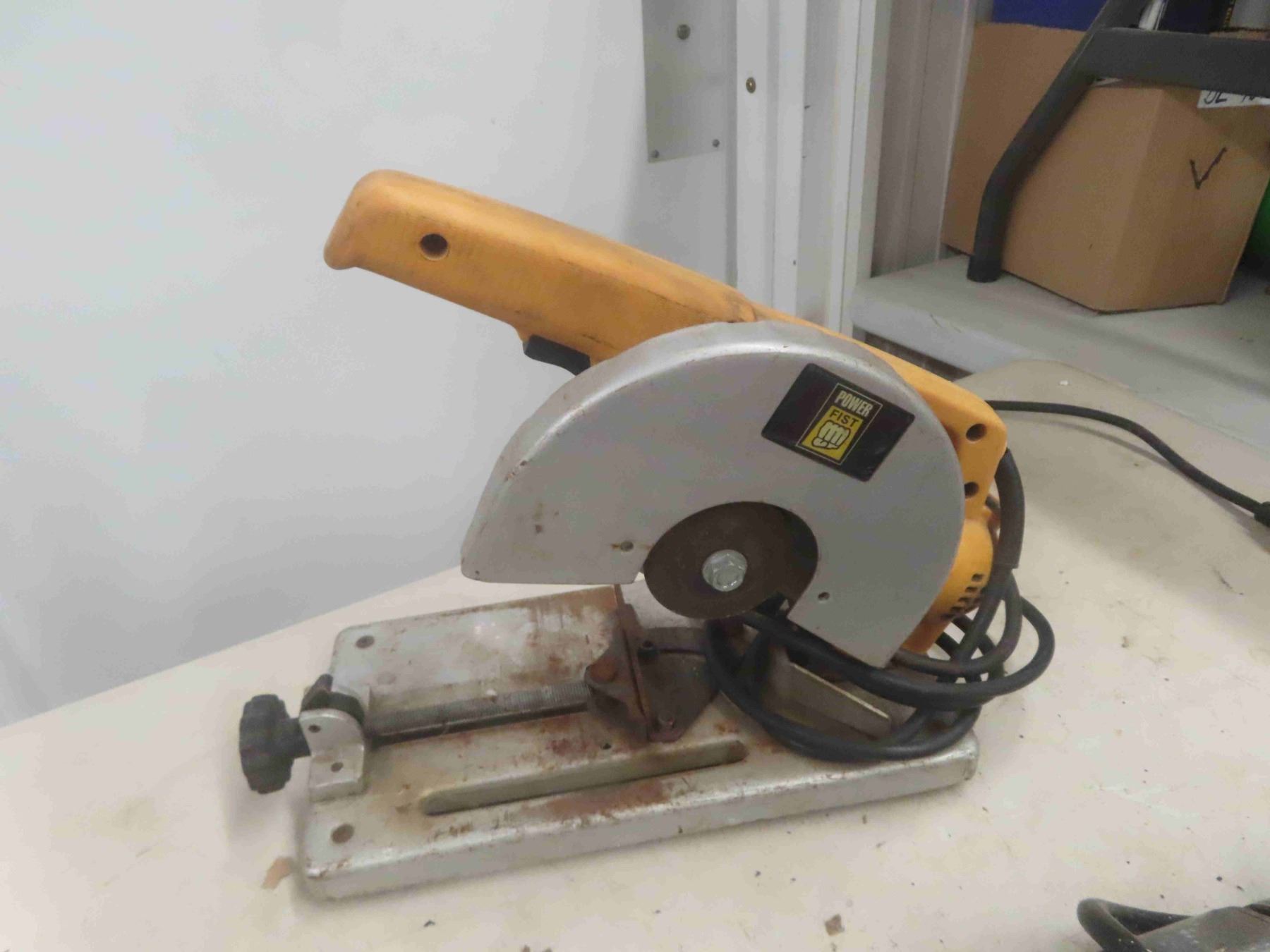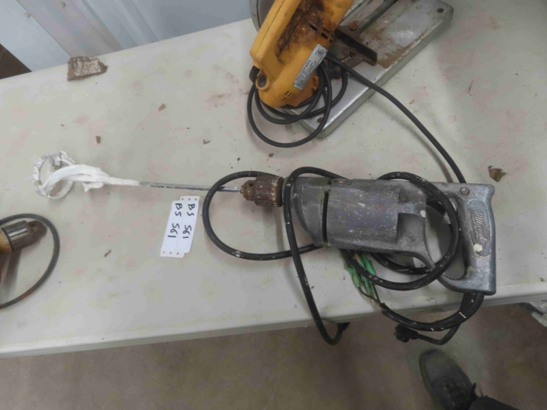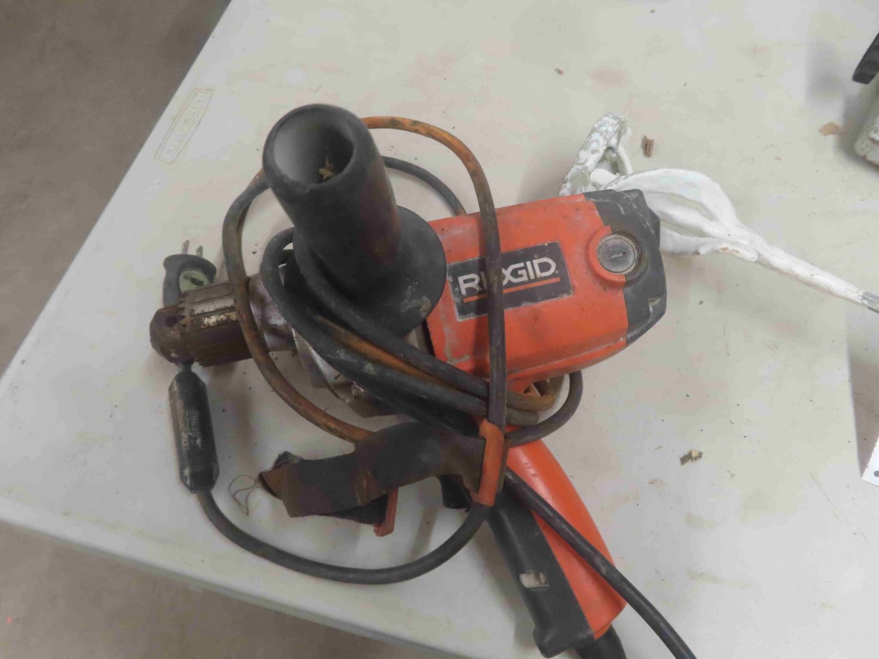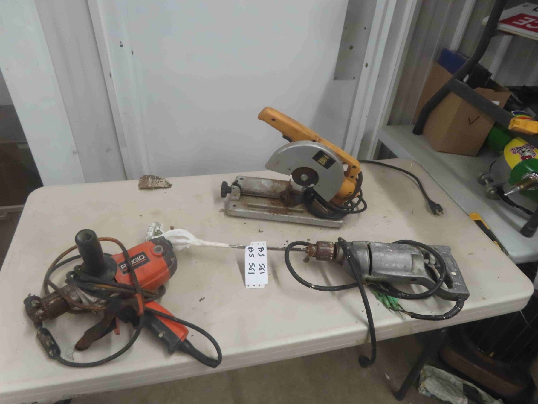 7" Abrasive Cutoff Machine, Ridgid 1/2" Drill, Older Milwaukee Drill with Paint Stir -