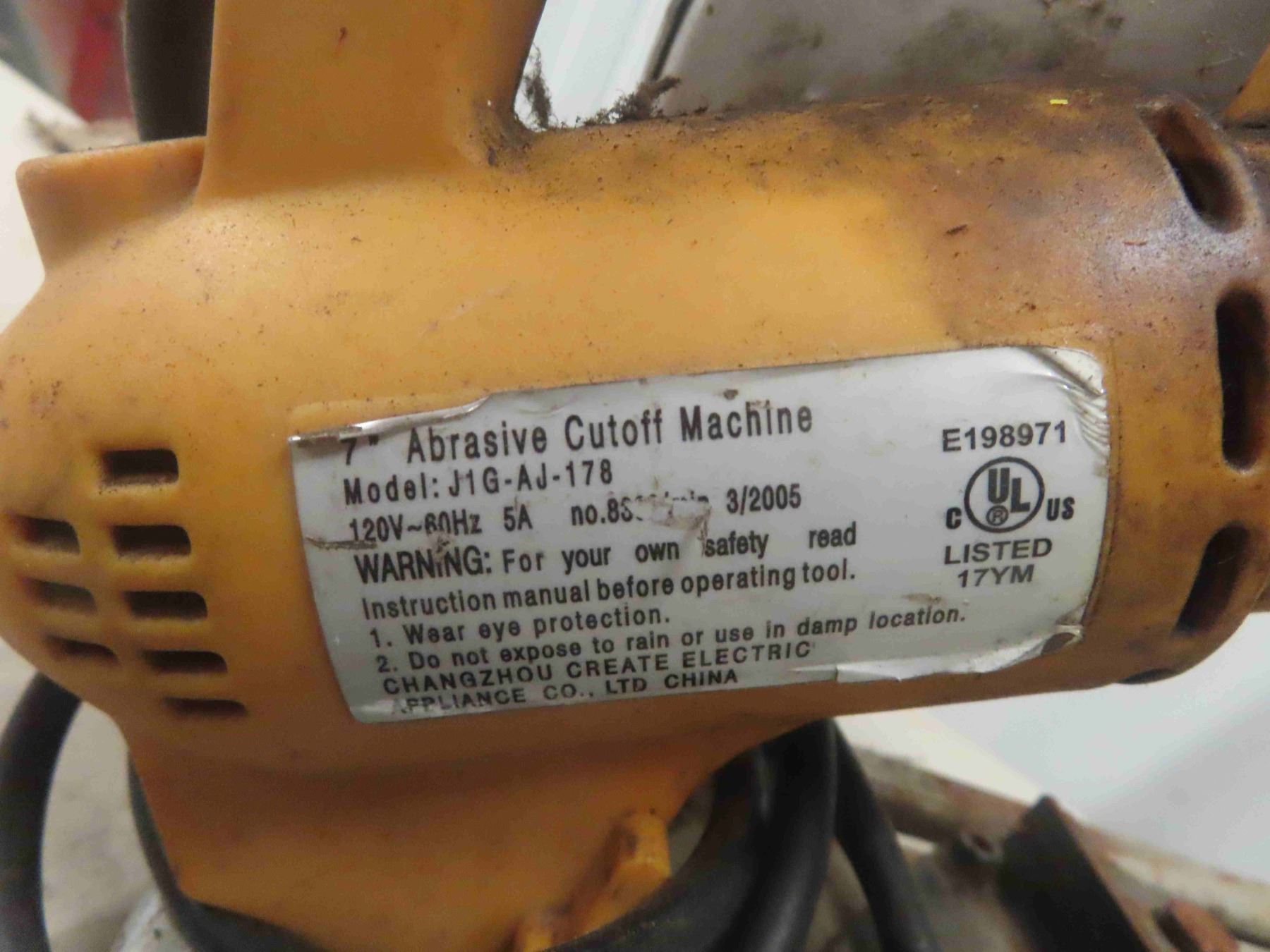 7" Abrasive Cutoff Machine, Ridgid 1/2" Drill, Older Milwaukee Drill with Paint Stir - Tested, Works