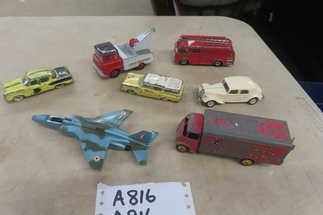 7 Assorted Dinky Die Cast Toys - Cars , Trucks, Plane