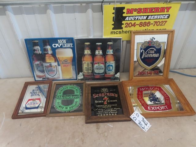 7 Booze Advertising; Pictures, Mirrored Signs - Biggest 11.5" x 14"