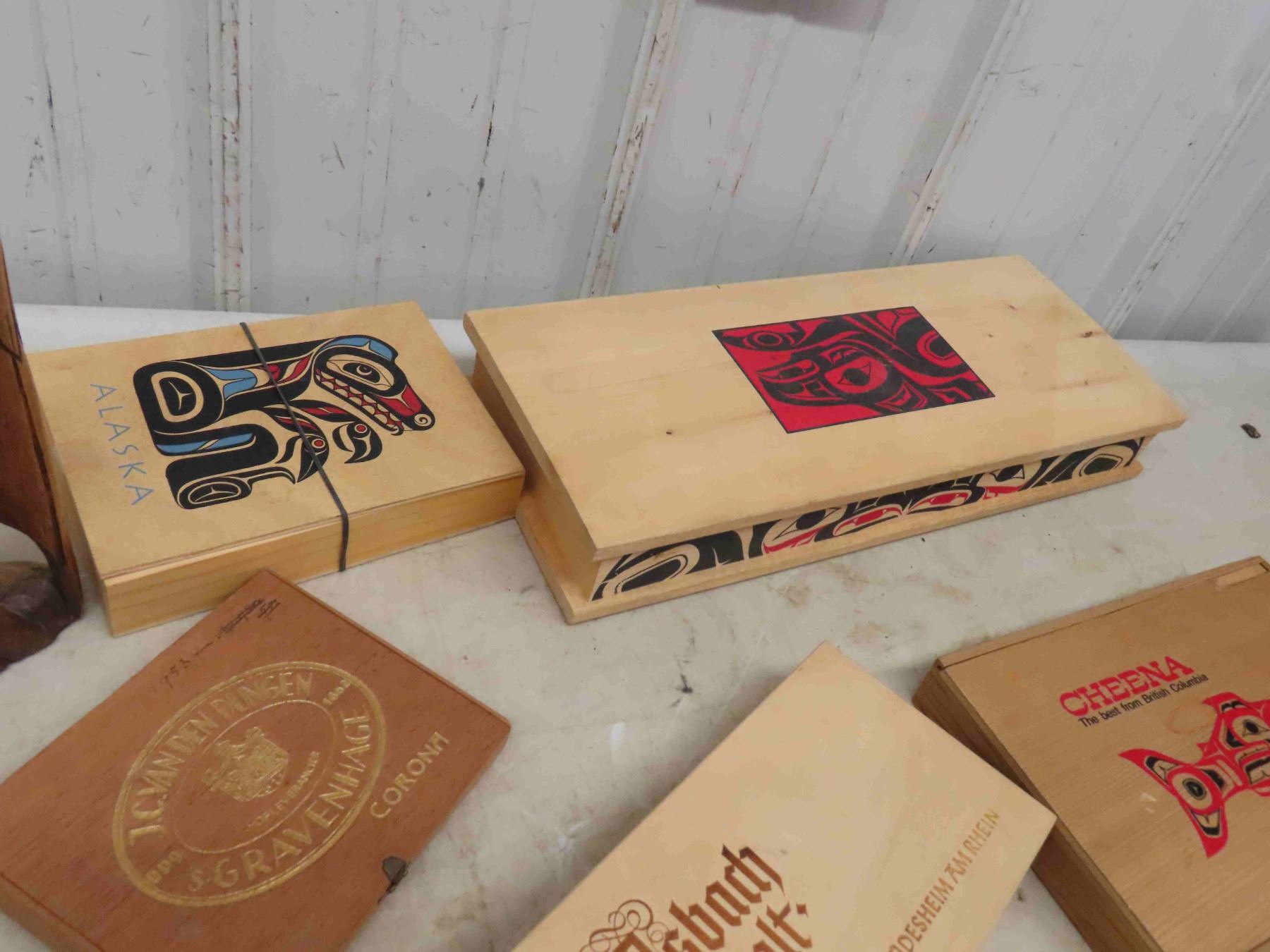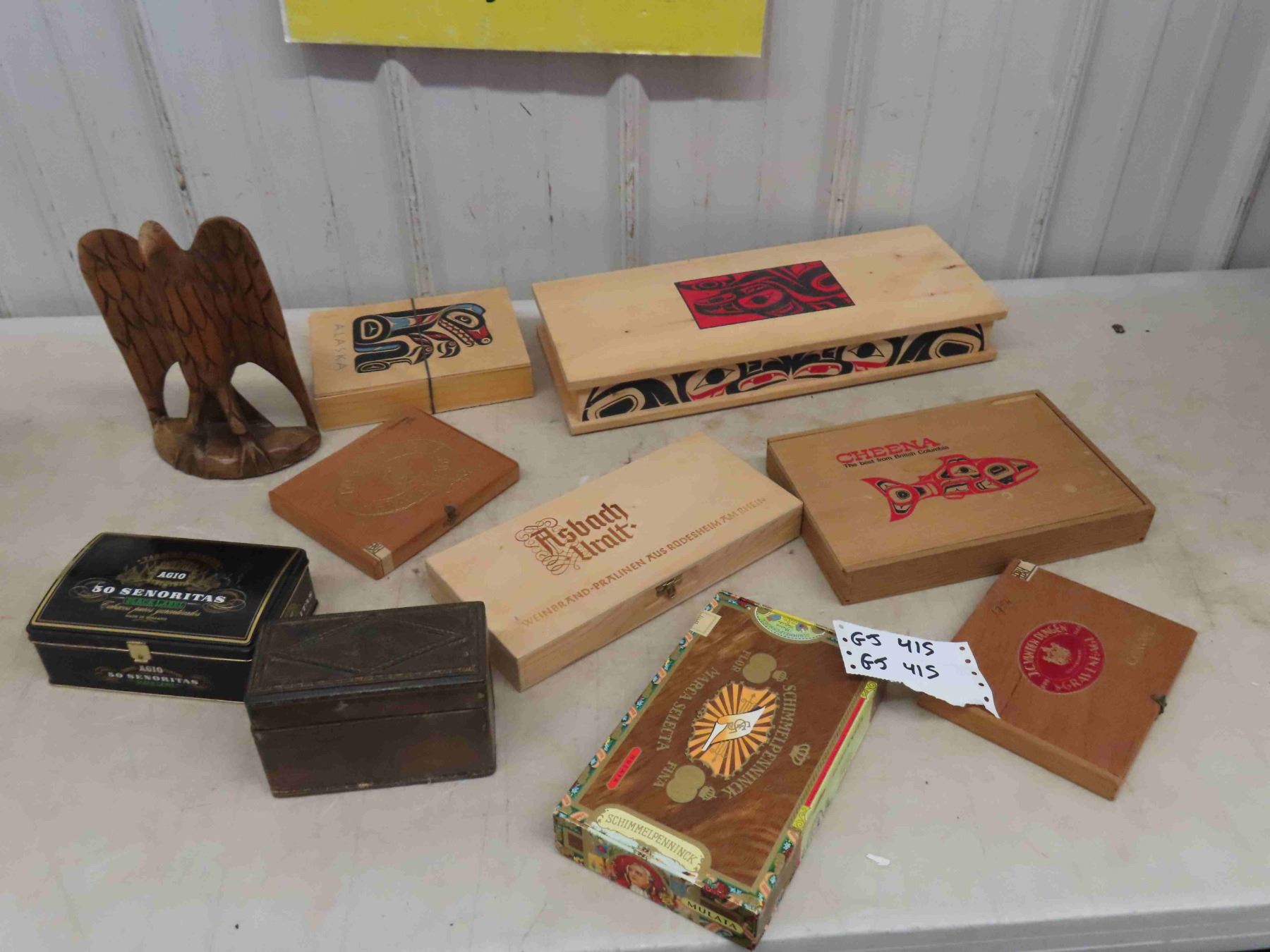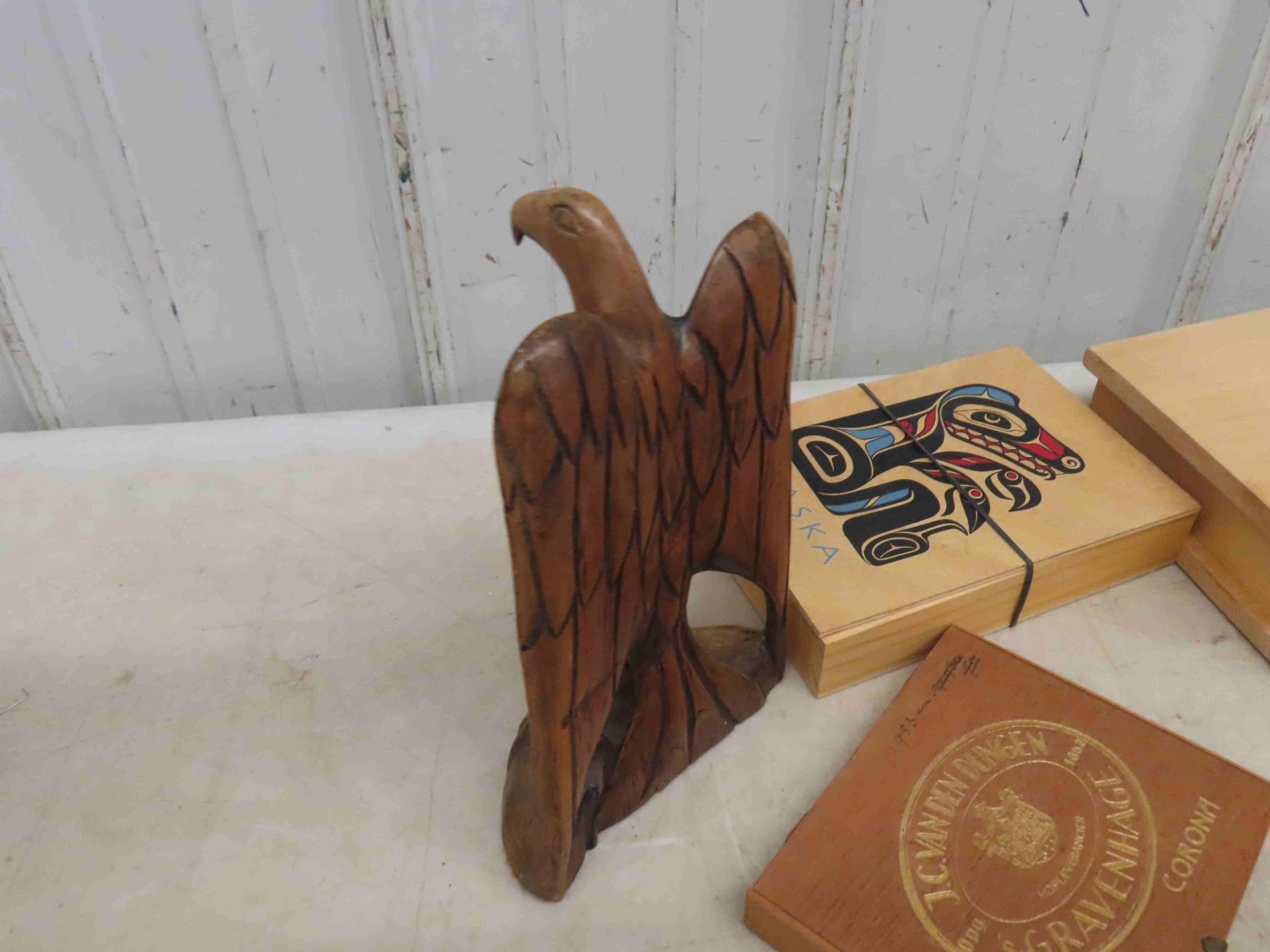 7 Boxes Notions + Cigars, Cigar Tin Box, Fancy European Cigarette Box- Folding + Carved Eagle
