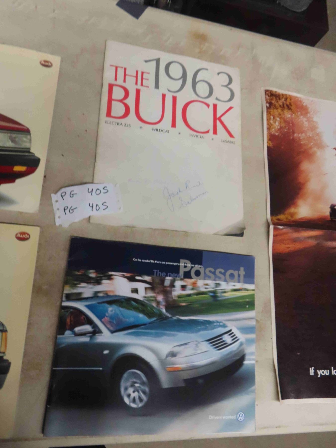 7 Car Brochures ; Dodge, Audi, Nissan Truck, Sales / Dealership Brochures ; VW Passat, 1963 Buick Electra, Lesabre, Wildcat, Inicta