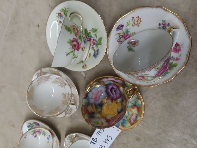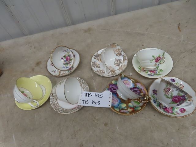 7 China Cup + Saucer Pairs; Royal Grafton, Roslyn, Occupied Japan, Taylor + Kent, Phoenix, plus