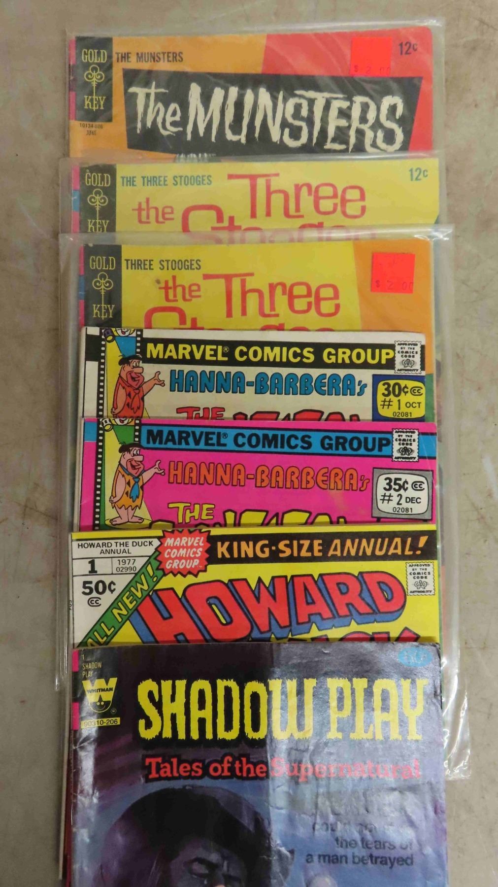 7 Comics ; Flintstones, Howard Duck, 3 Stooges, The Munsters - 12 to 60 Cent Covers