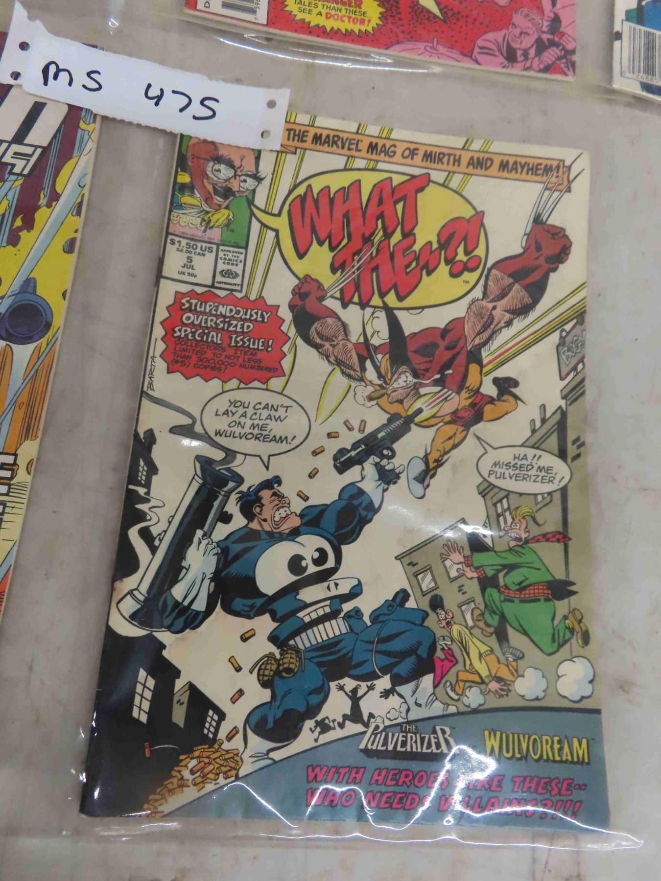 7 Comics: Marvel Adventure Ft. Dare Devil 25c #3 Issue, Marvel the Punisher 2099 $1.25 Issue #3, Marvel Curse of the Weird $1.25 Issue #1 , Marvel Powerpack $1.50 #46 Issue, Marvel What The $1.50 #5 Issue , Marvel the Punisher #2 2099 $1.25, Amalgem Man of War $1.95 #1 Issue'