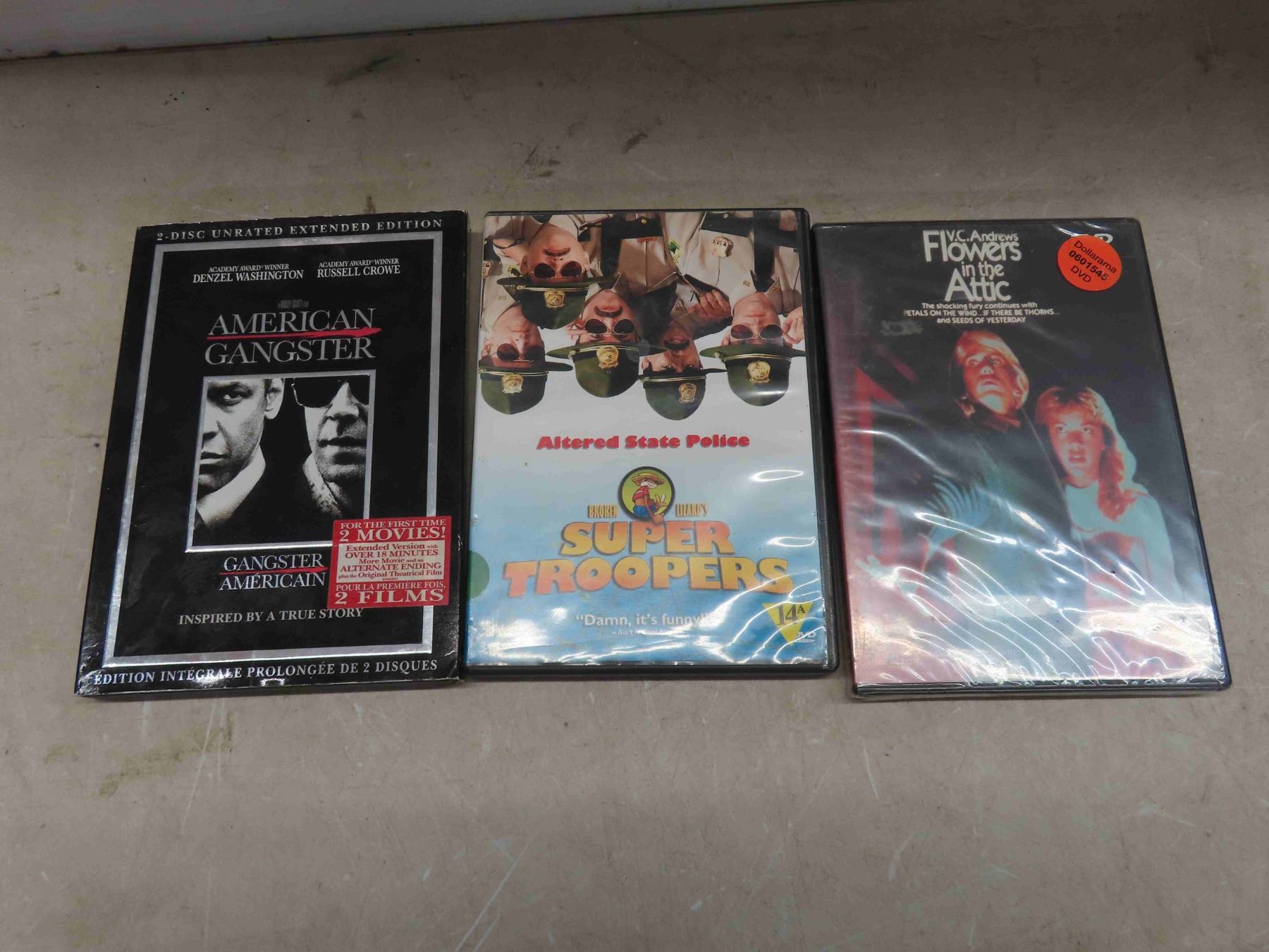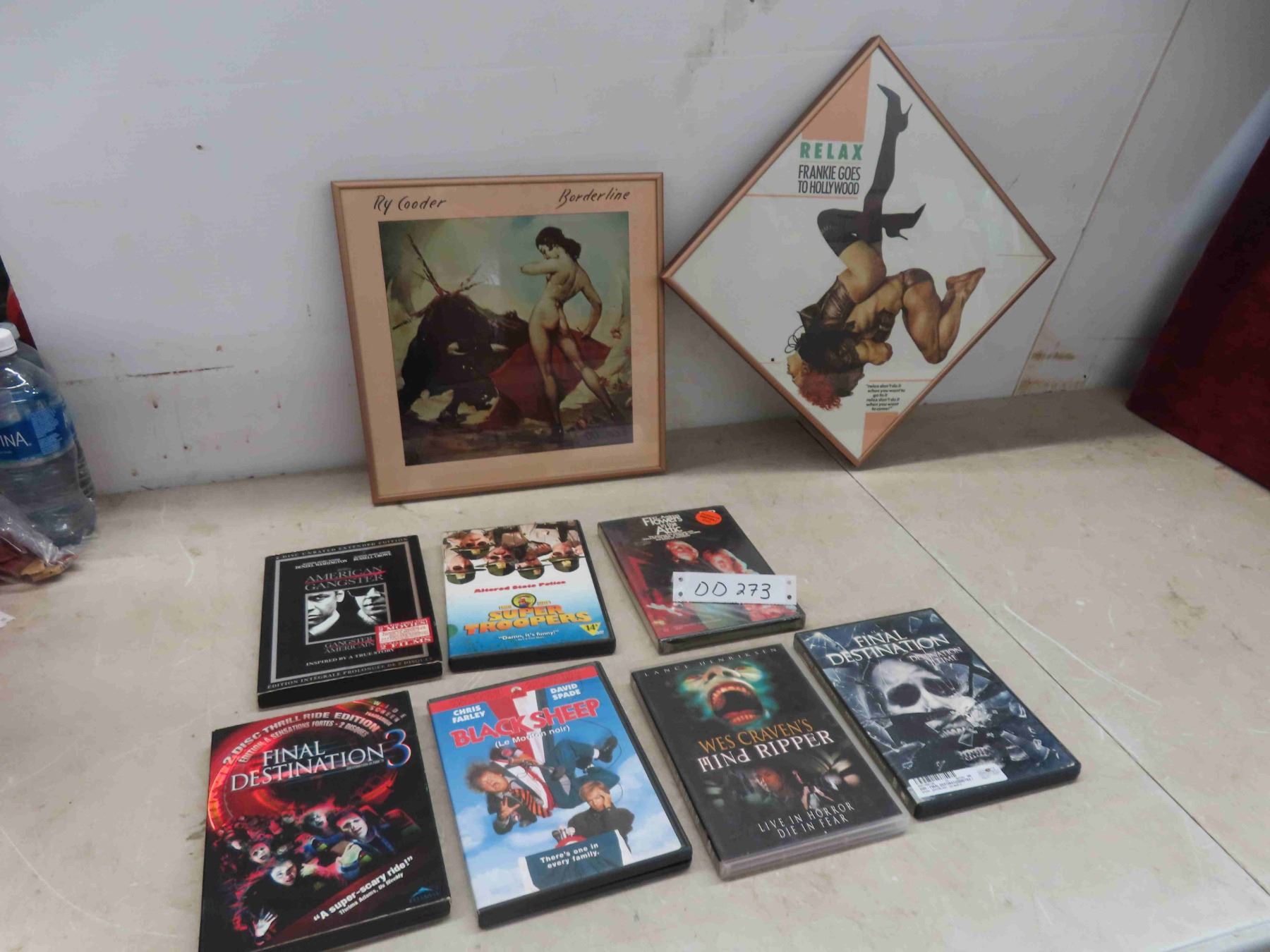 7 DVDs: Super Troopers, American Gangster, Final Destination & Others, 2 Framed 12'' x 12'' , Record Albums