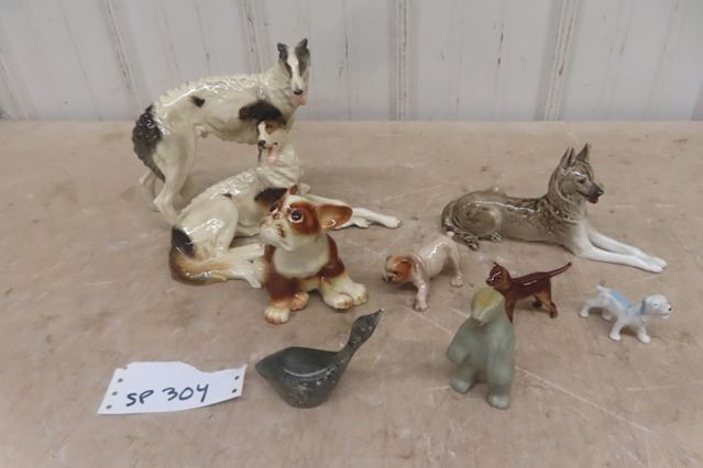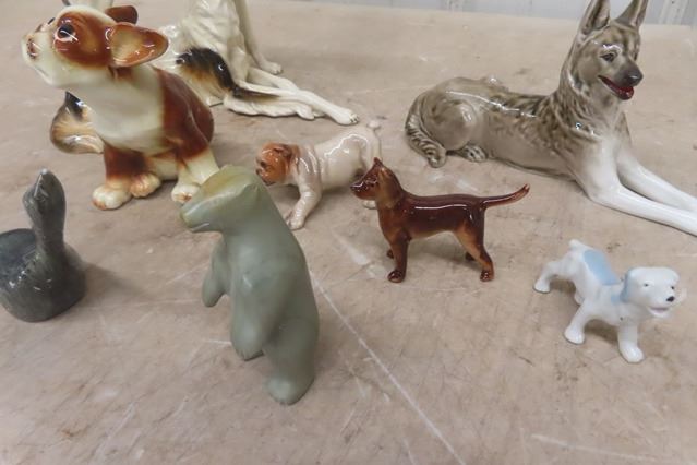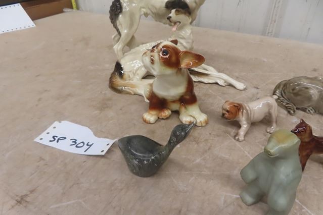 7 Dog Ornaments & 2 Soap Stone - Biggest 8" x 11"