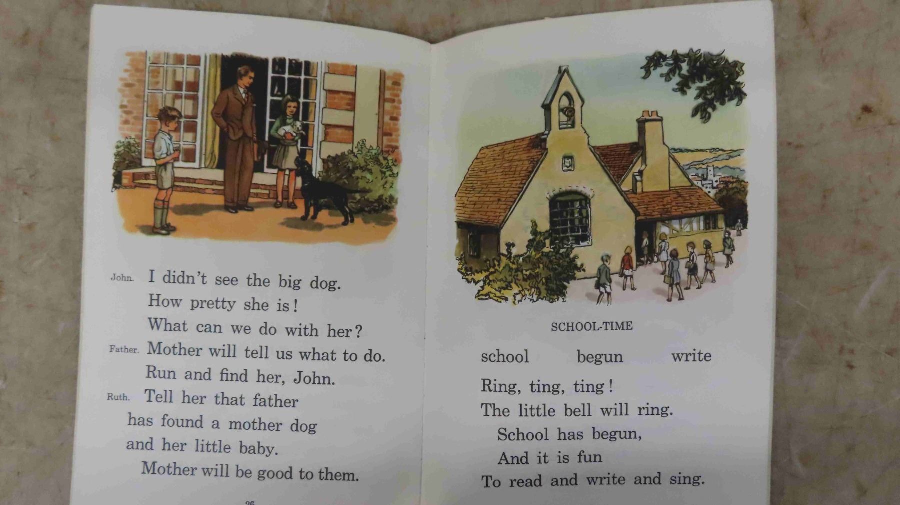 7 Early Readers Including Dick + Janes ; We Come We Go, fun with Dick + Jane, (2) Come with Us , (2) Bebe+ Marie + Jean, My Little Blue Story Book, At Play