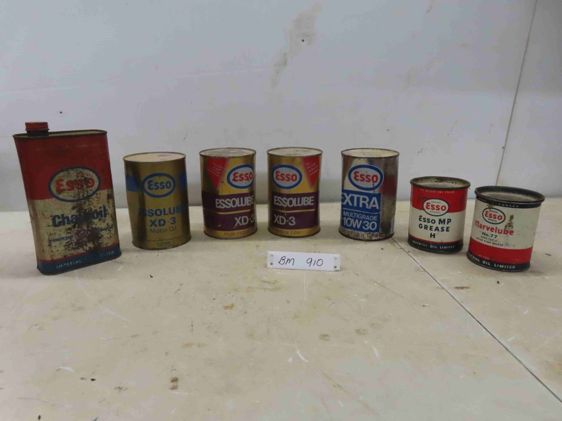 7 Esso Cans: Oil, Grease, Chain Oil, Some with Product