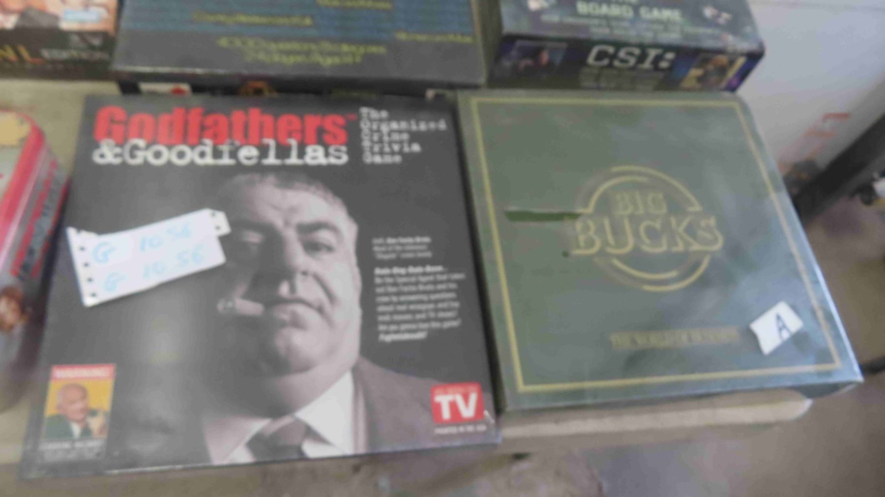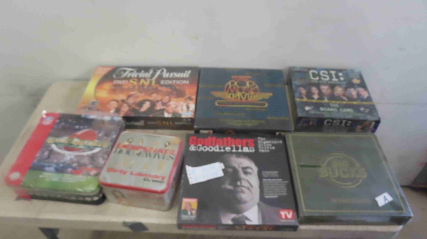 7 Factory Sealed Board Games: Trivial Pursuit , Pop Music Trivia, CSI, Godfathers and Goodfellas, The Bucks