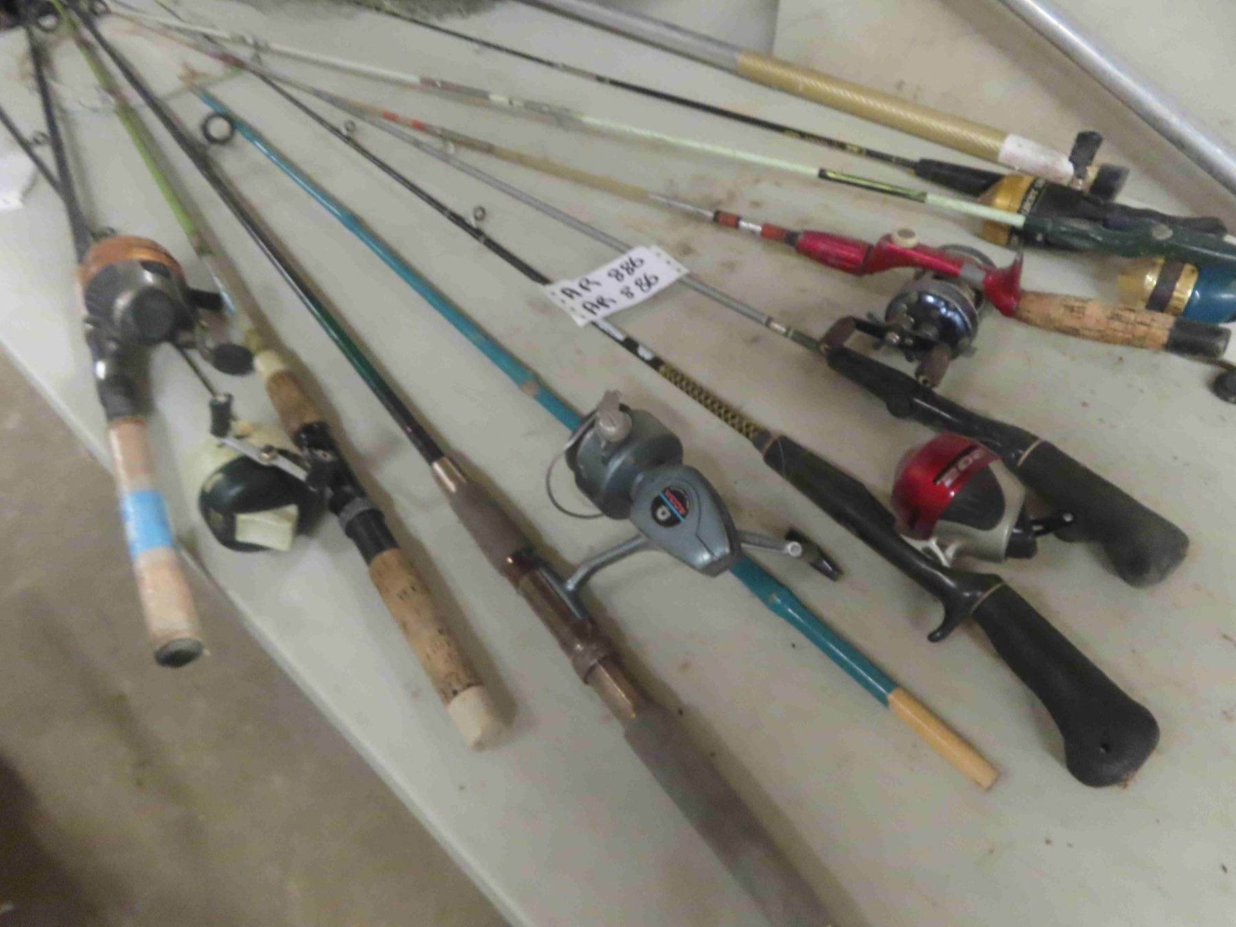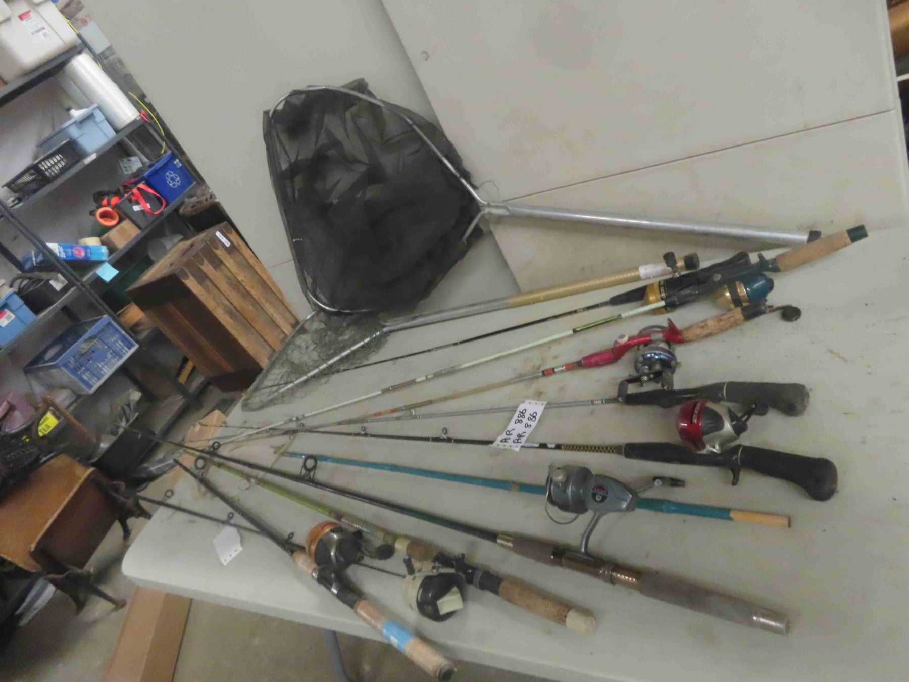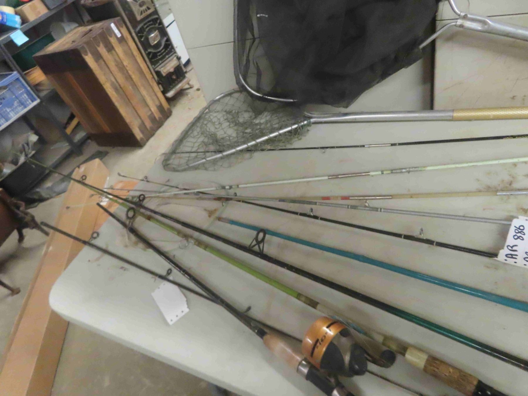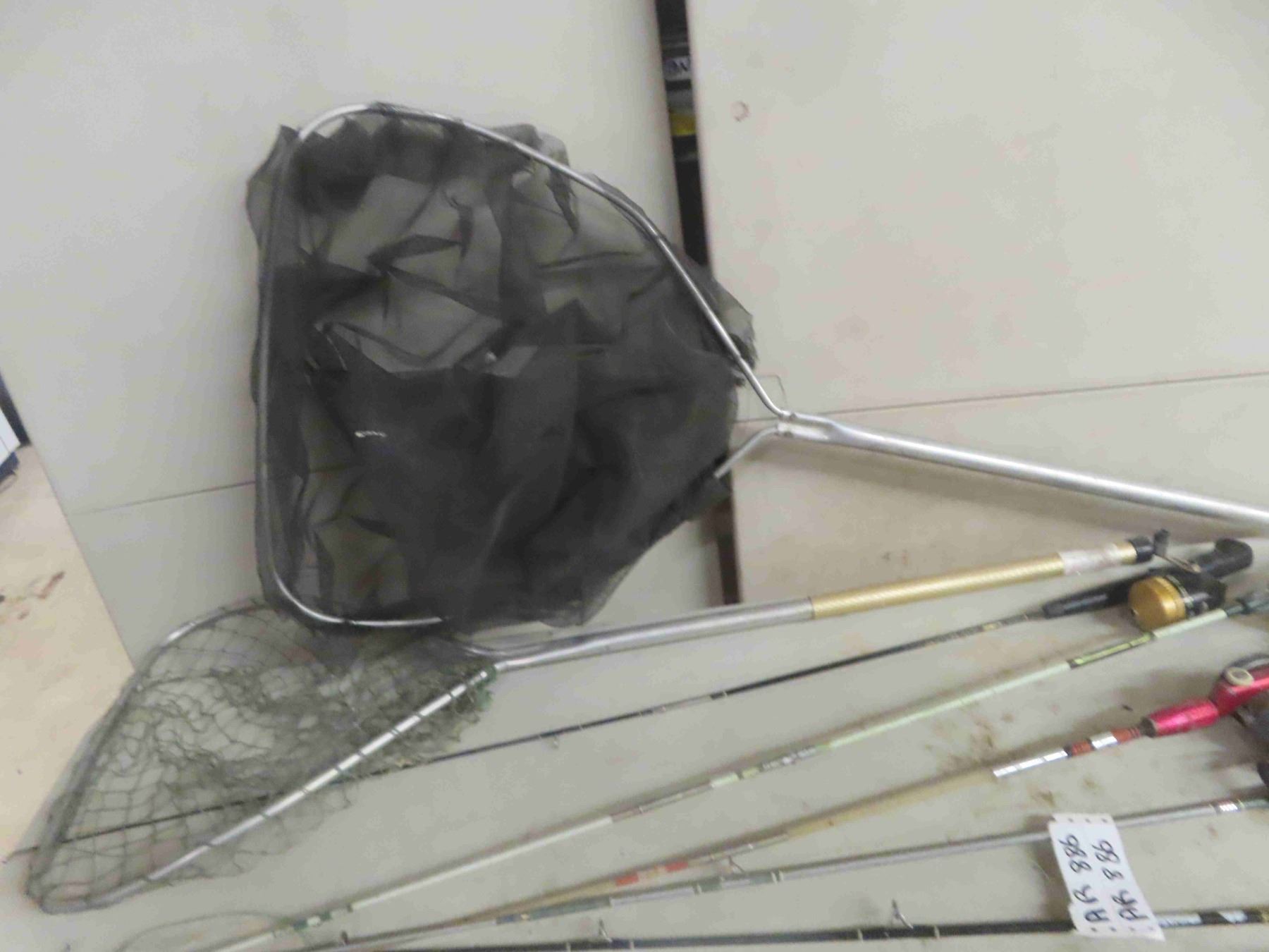 7 Fishing Rods + Reels & 2 Nets