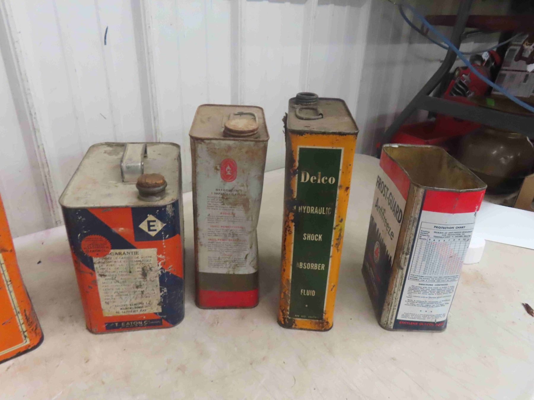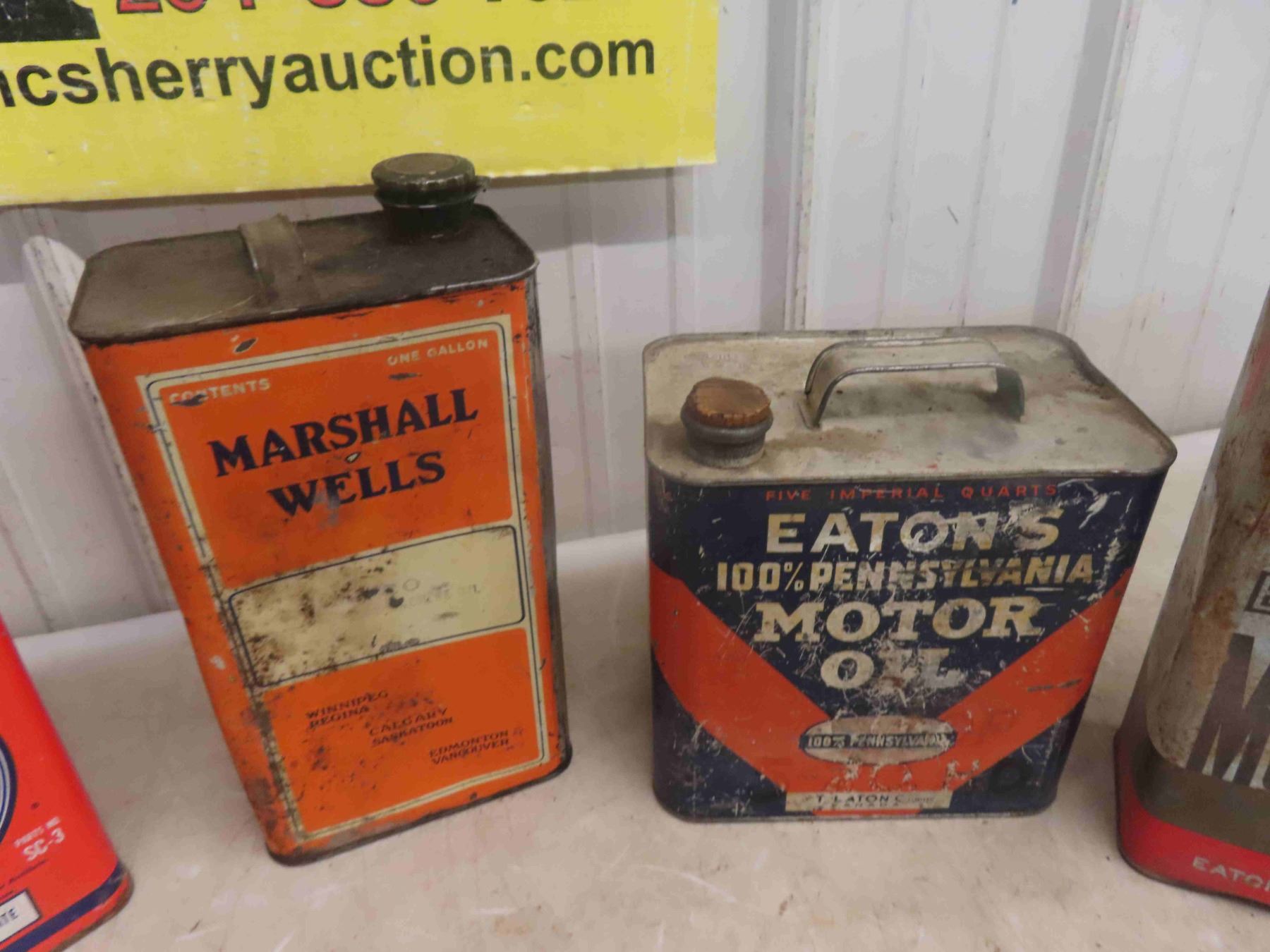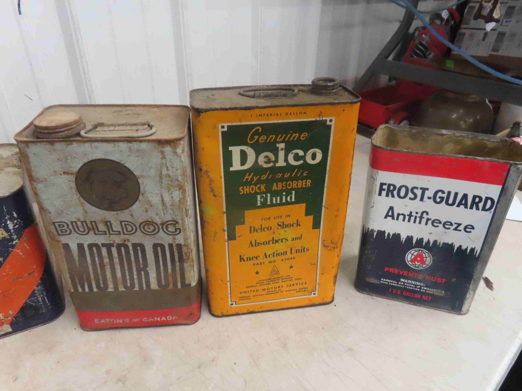 7 Gallon Cans Oils, Antifreeze, Degreaser, Marshall Wells, Eatons, Delco , Frost Guard