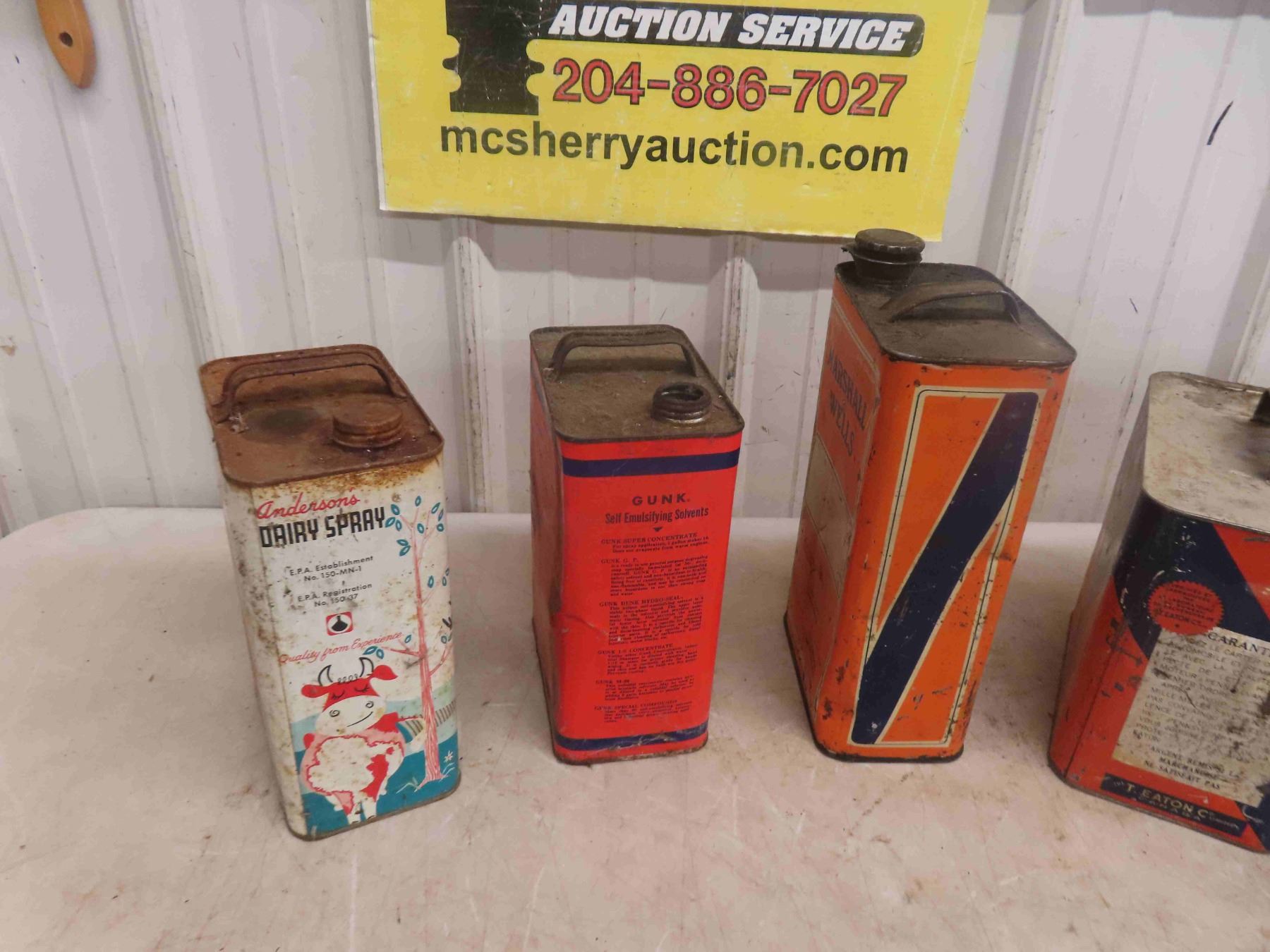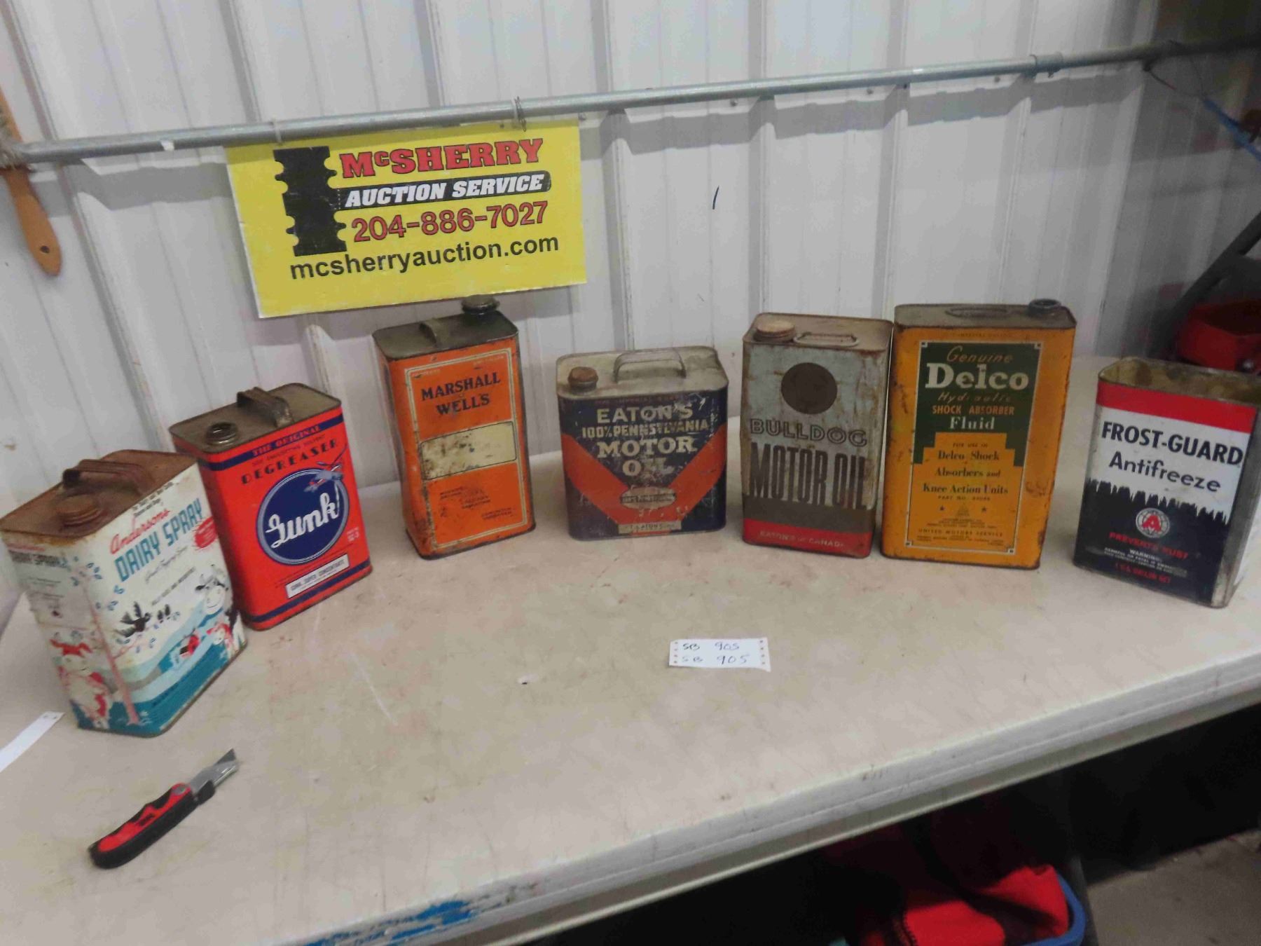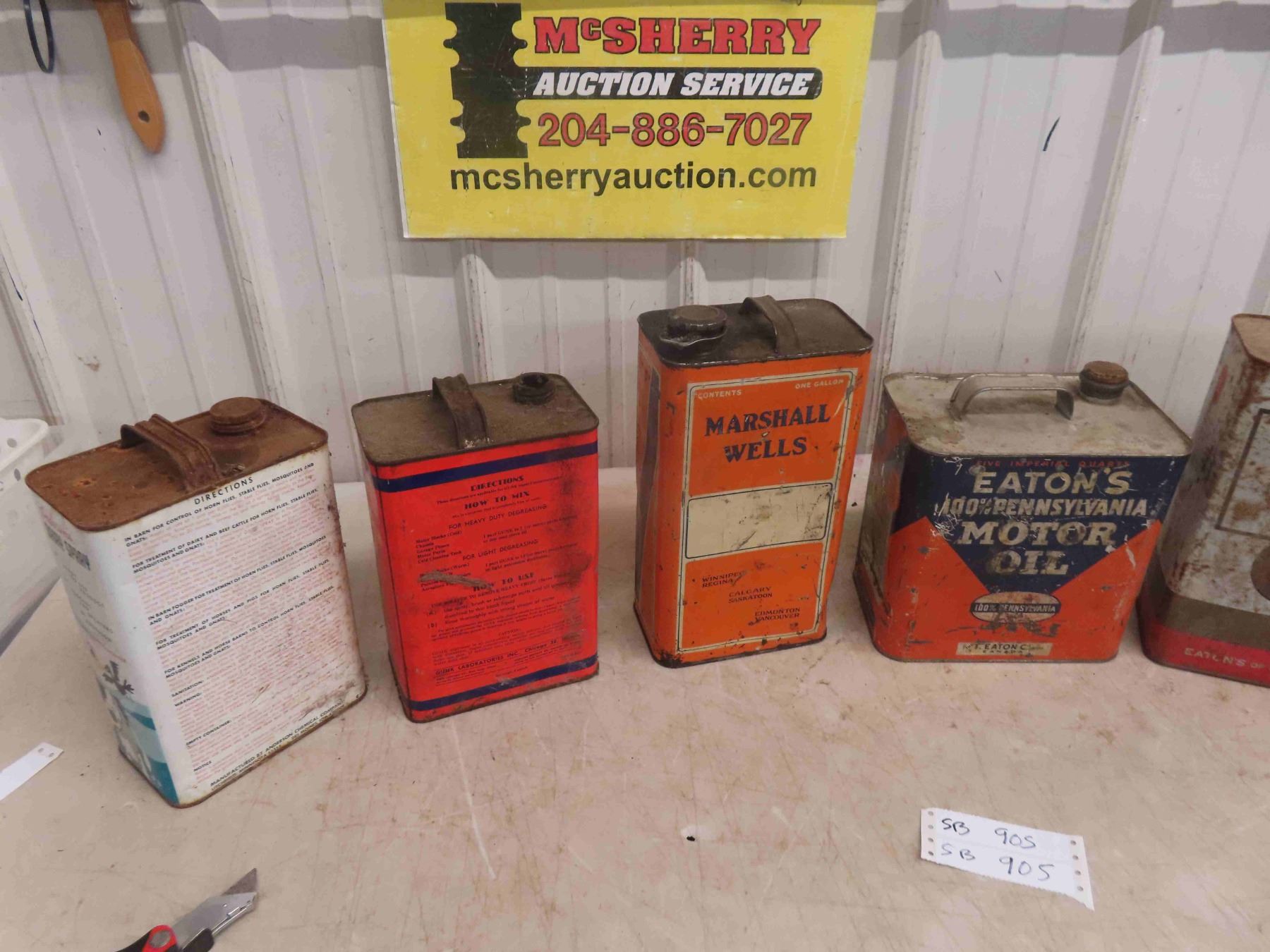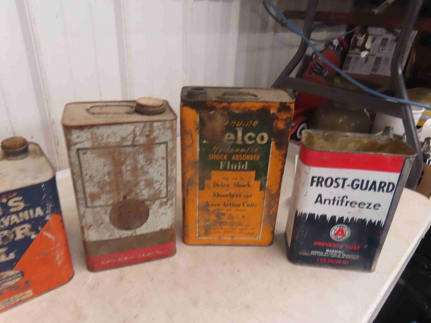 7 Gallon Cans Oils, Antifreeze, Degreaser, Marshall Wells, Eatons, Delco , Frost Guard