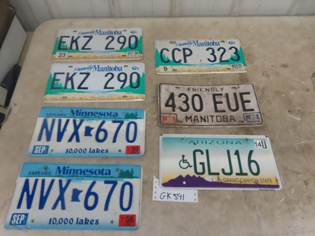 7 License Plates; 3 Manitoba, 2 Minnesota, 1 Arizona