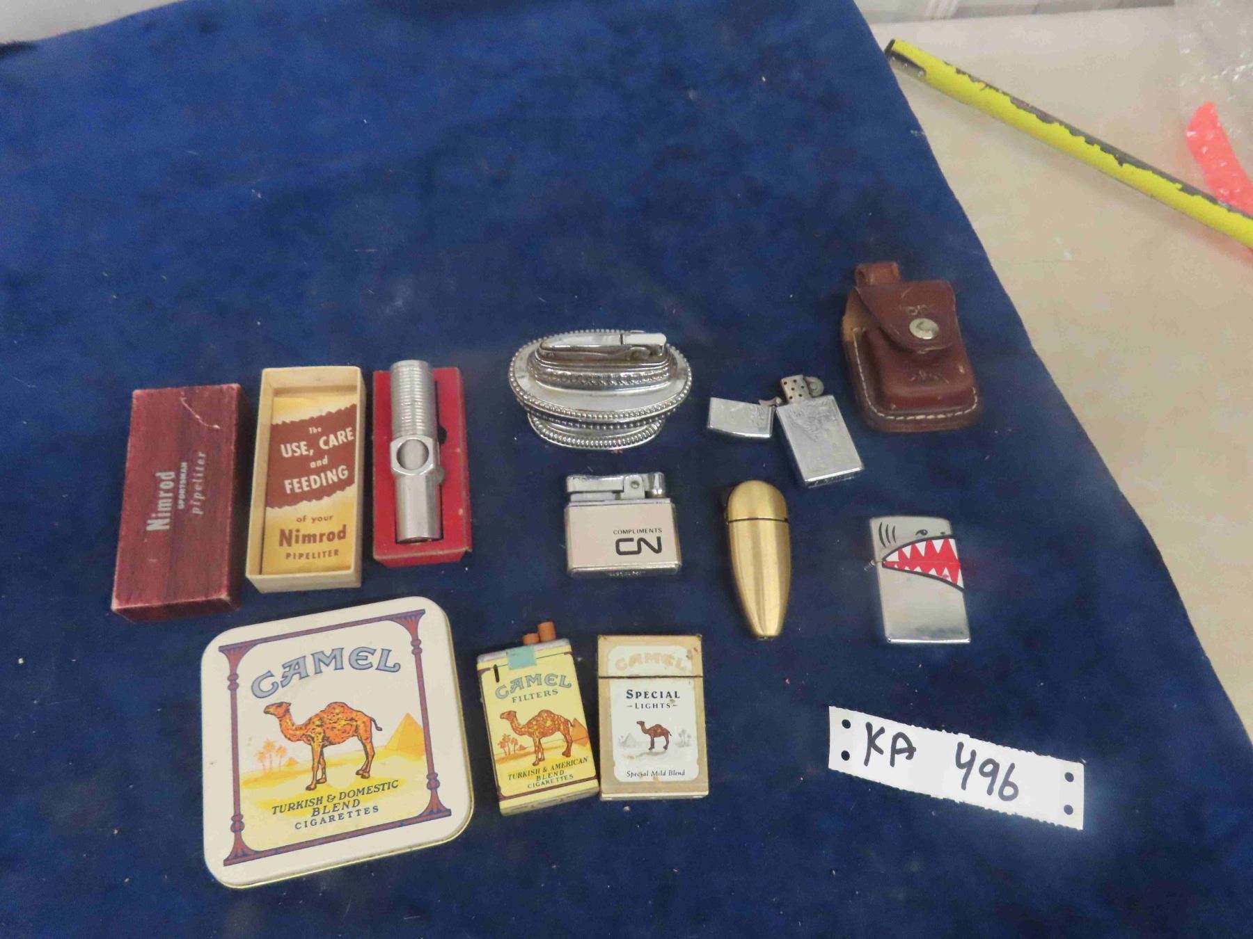 7 Lighters ; CN, Zippo with Holster, Various Advertising + Nimrod