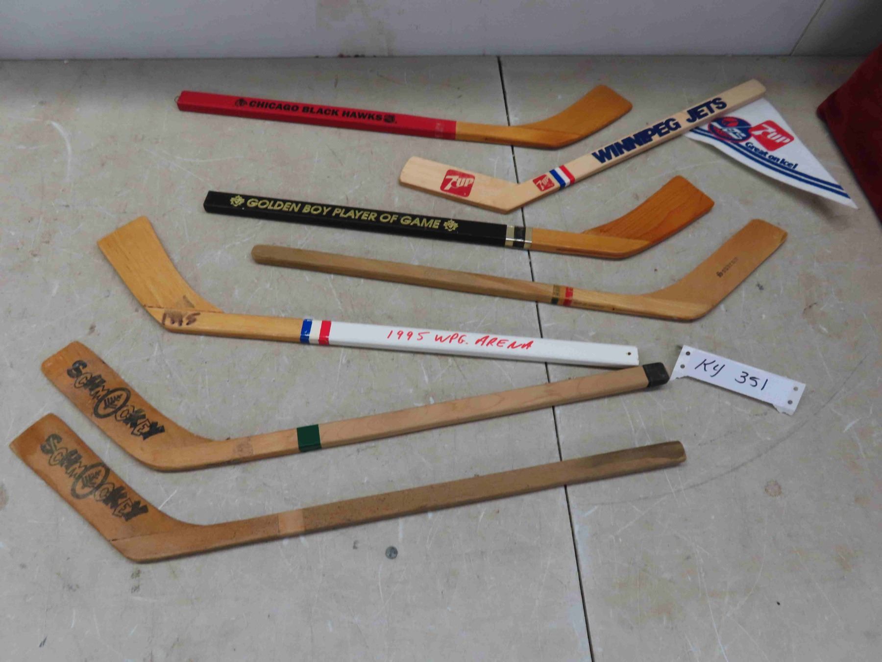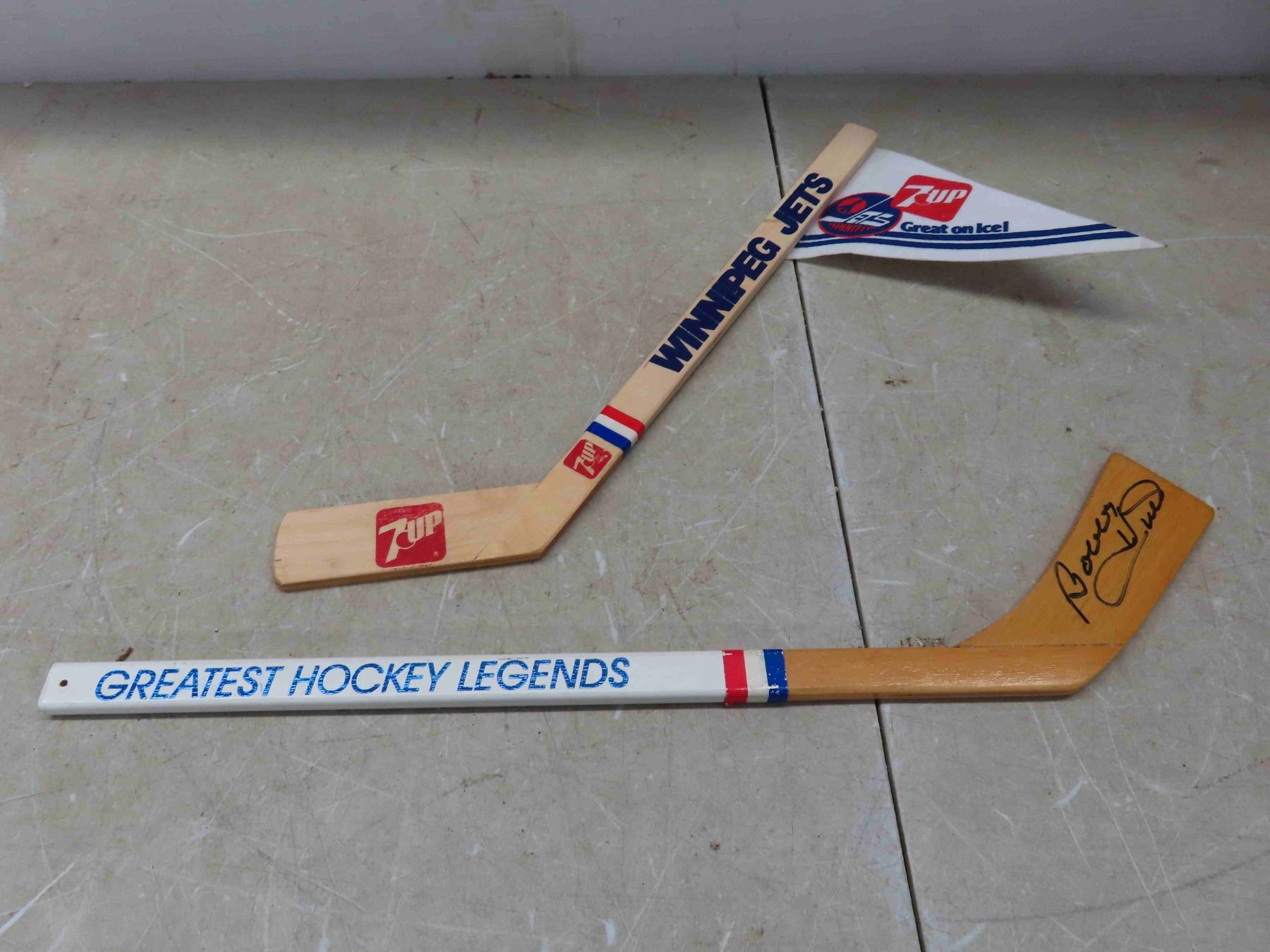 7 Mini Hockey Sticks , Bobbly Hull Autograph