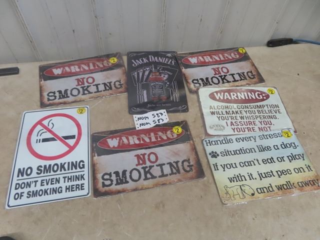 7 Modern Metal Signs : No Smoking, Alcohol, Jack Daniels