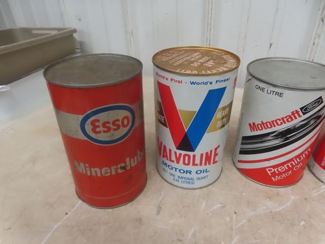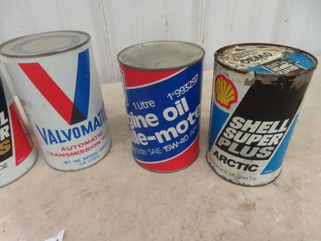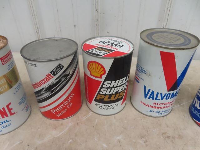 7 Oil Quart Cans - Full of Product ; Shell, Valvoline, Motorcraft, GM