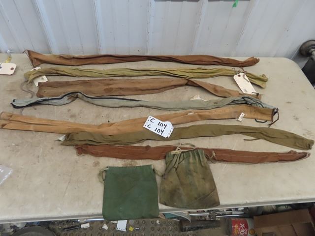 7 Old Canvas Fishing Rod Soft Cases & 2 Pouches
