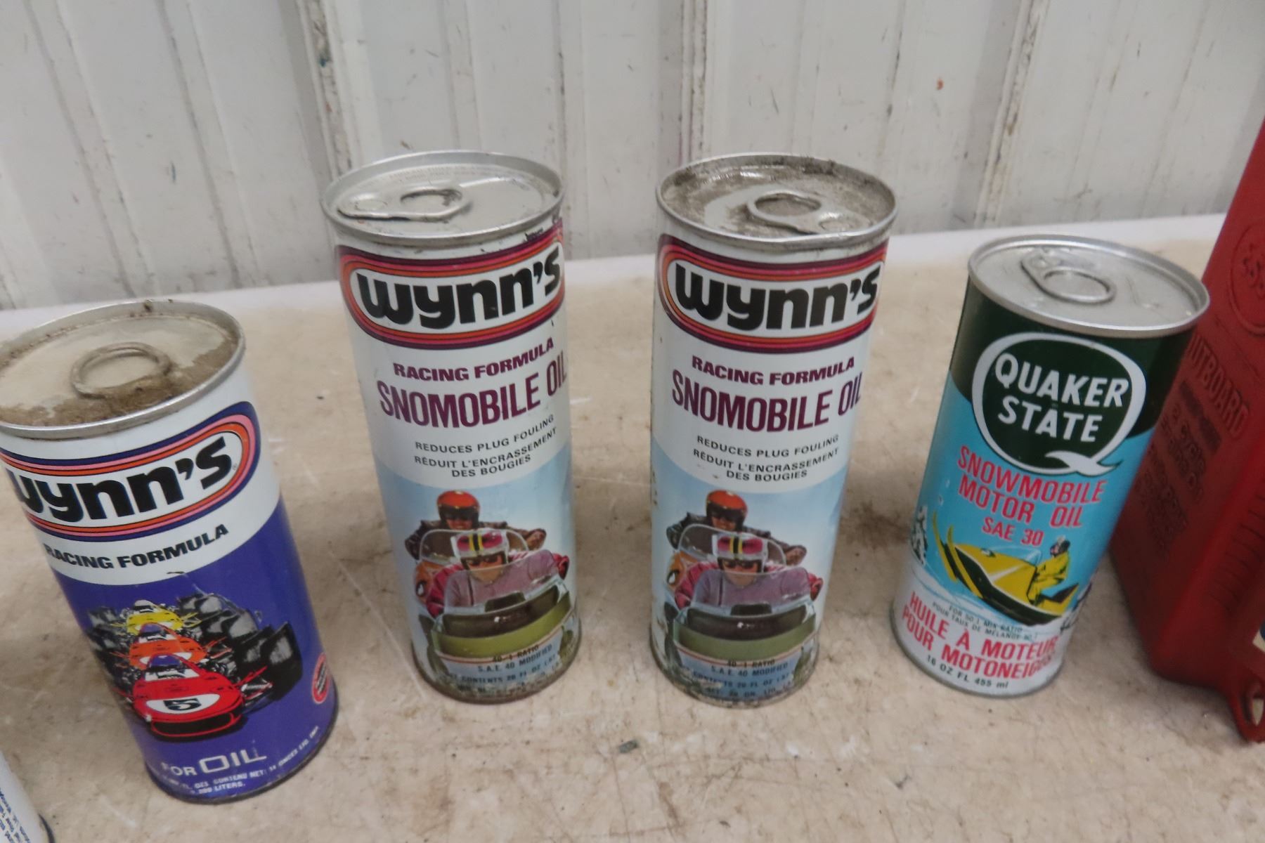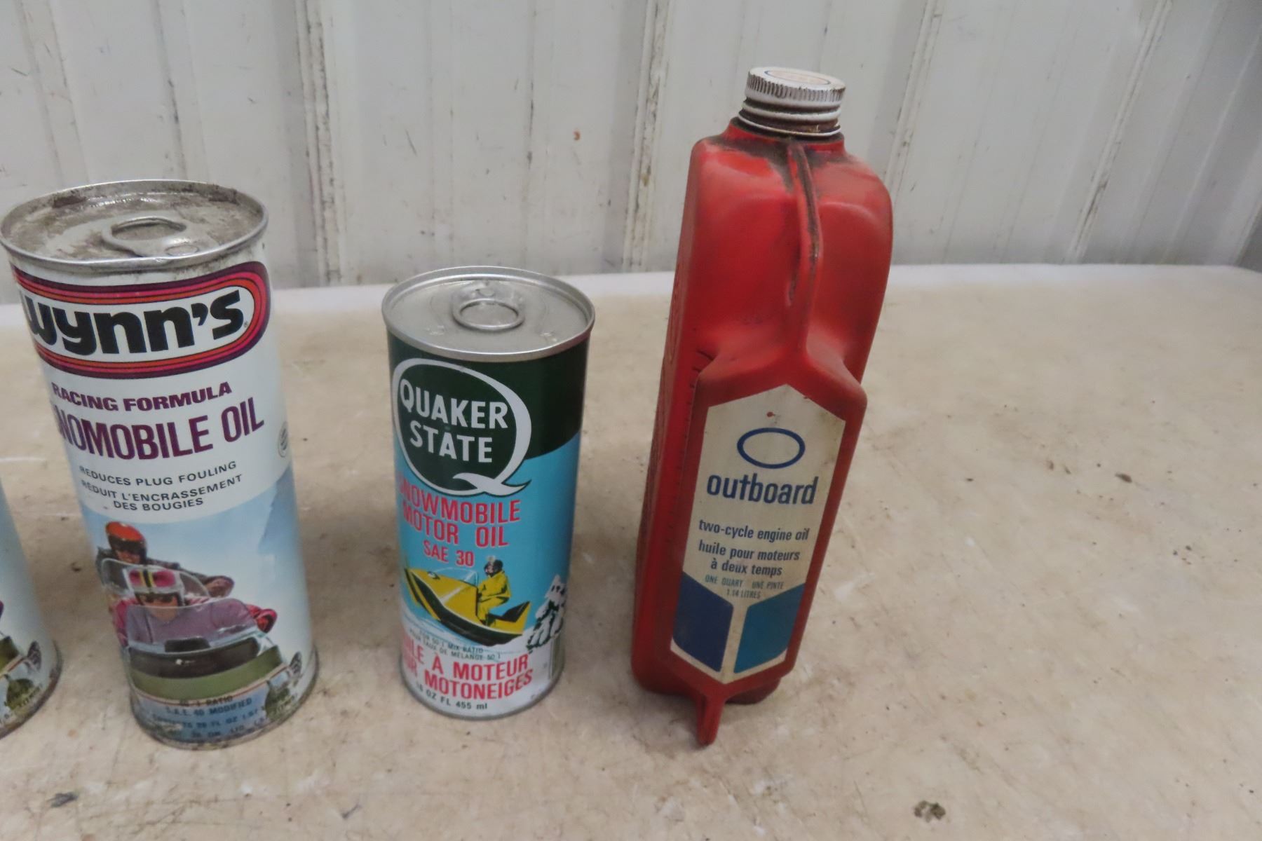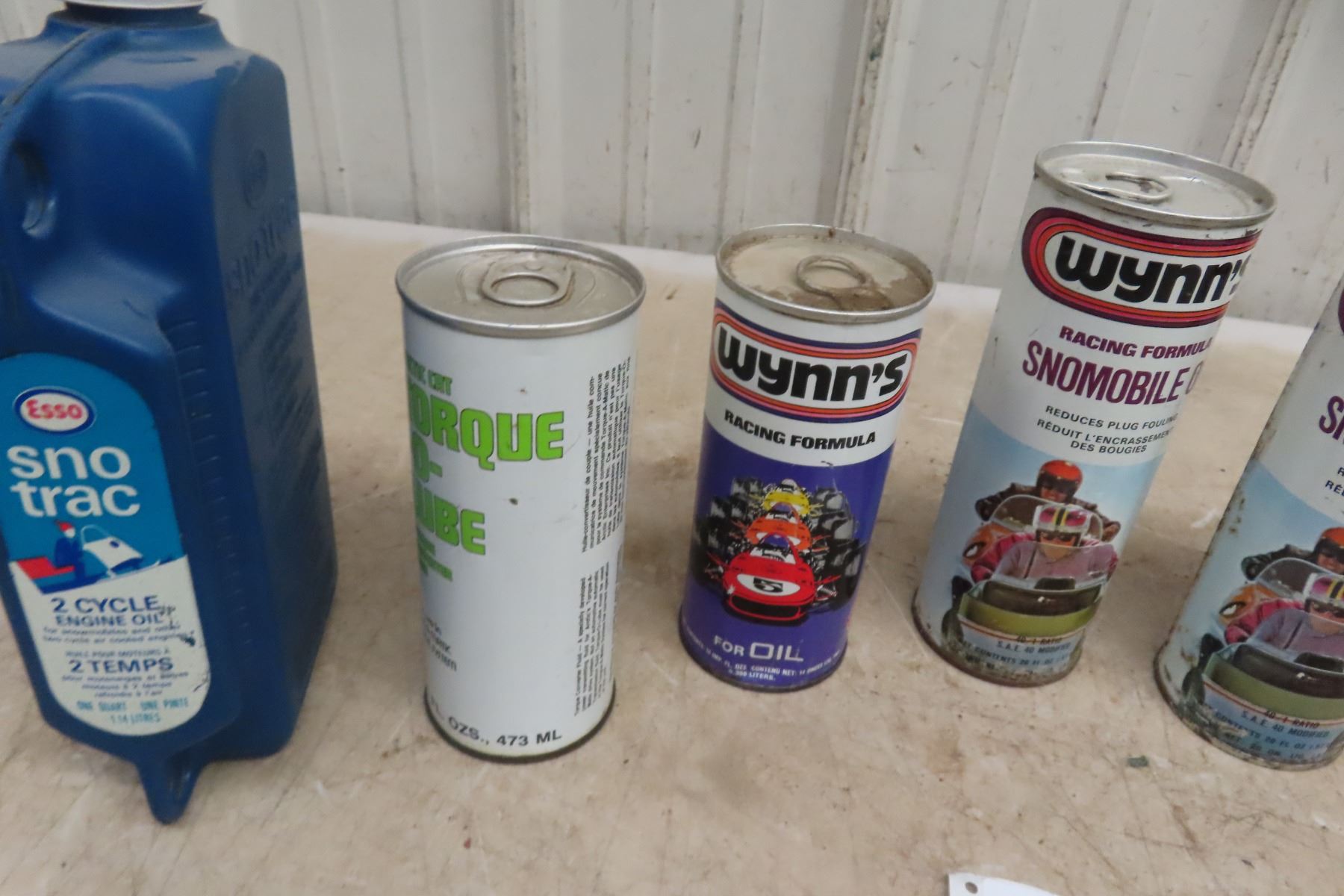 (7) Outboard & Snowmobile Oil Cans: Esso, Wynns, Quaker State.