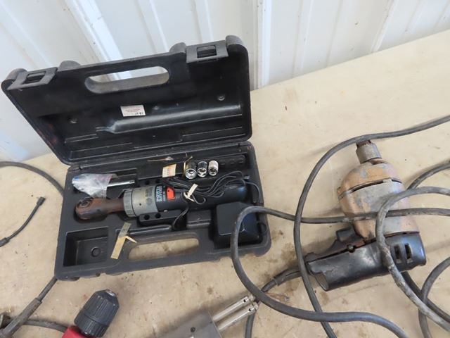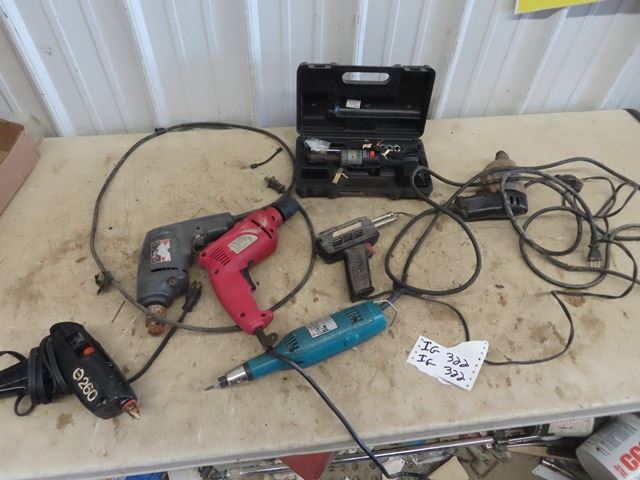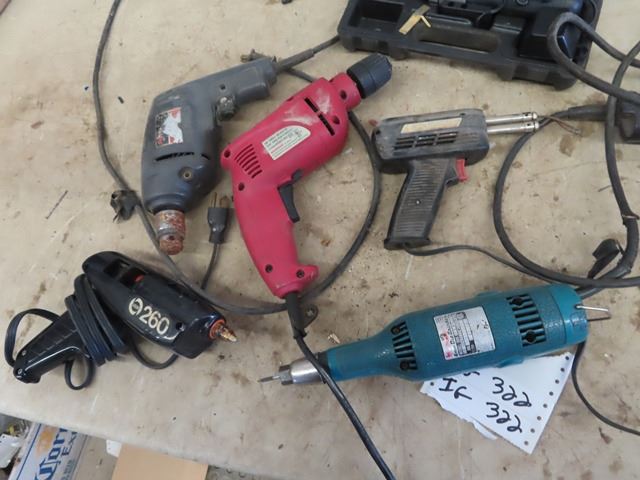 7 Power Tools - Makita Die Grinder, 3 Drill, Glue Gun, Soldering Gun, Cordless 1/4" Ratchet