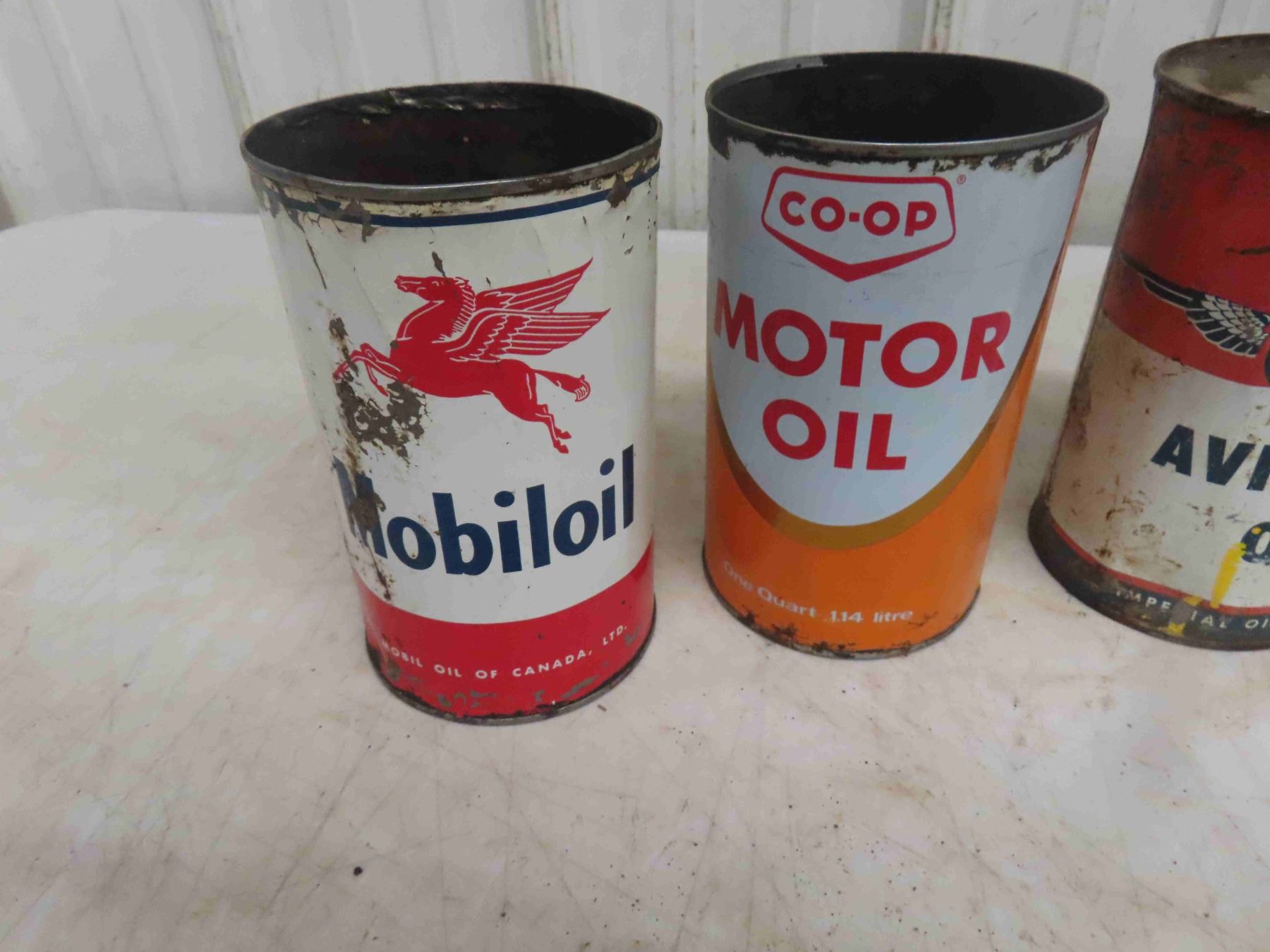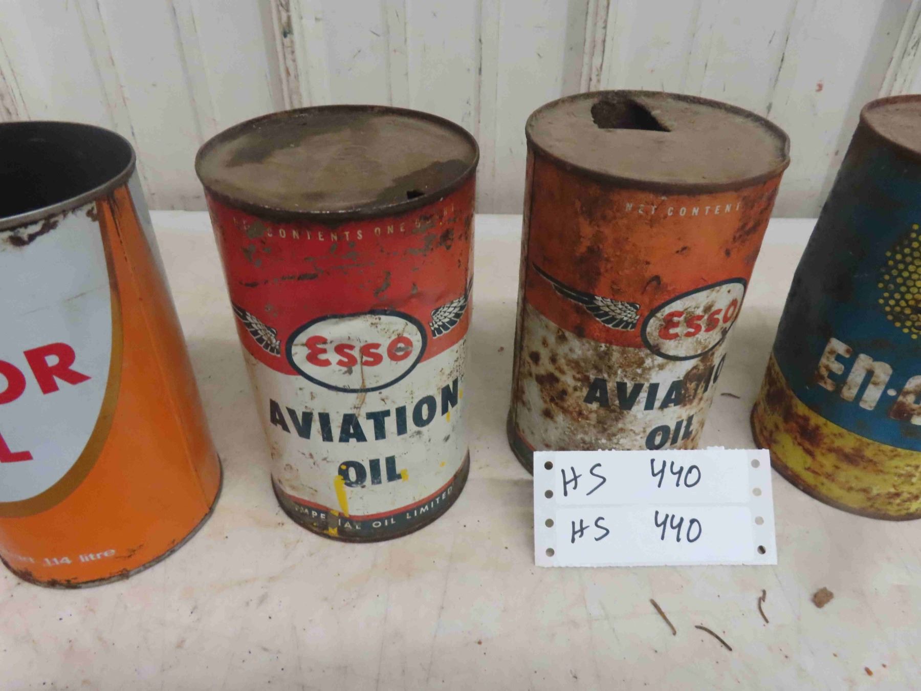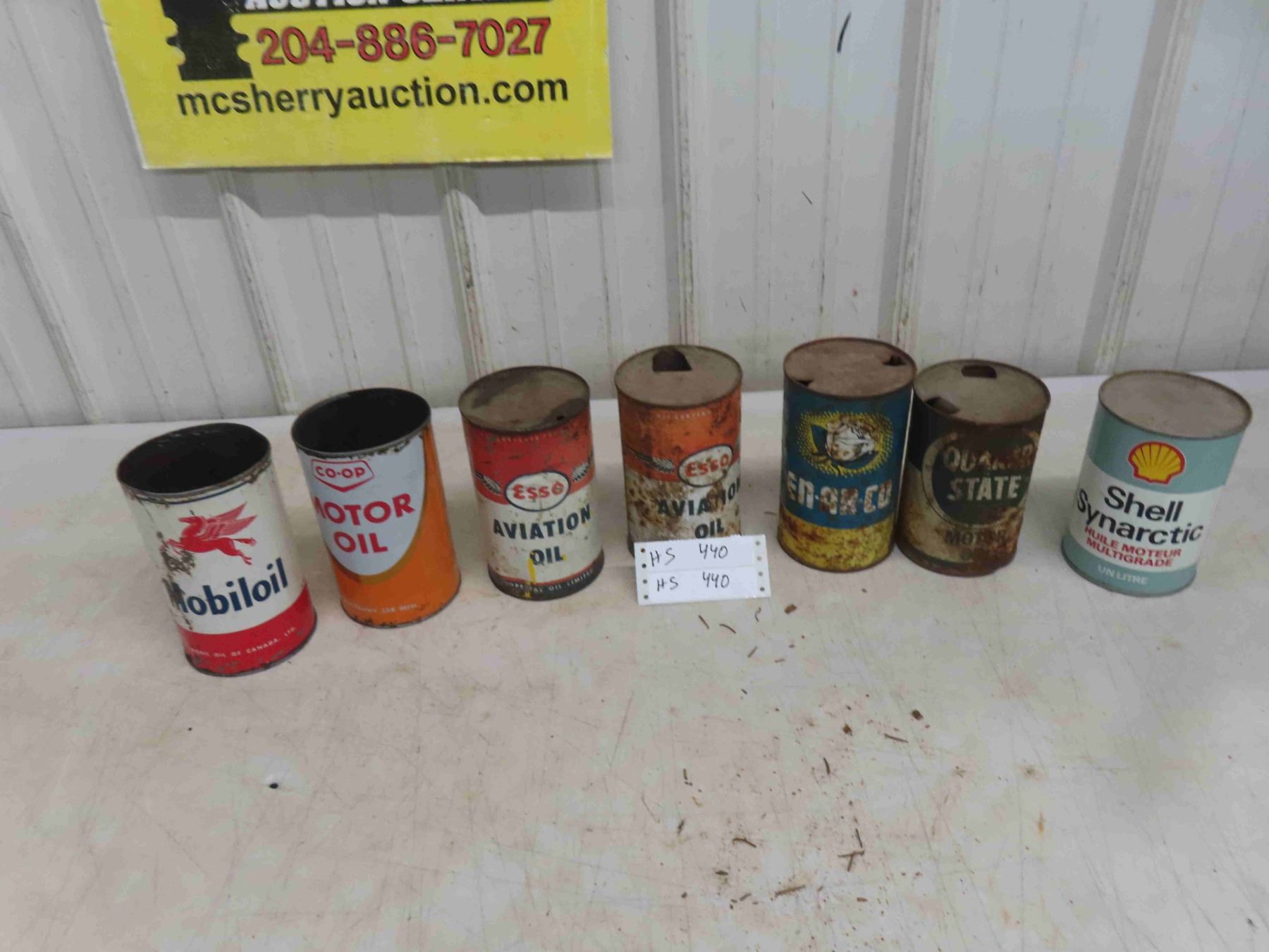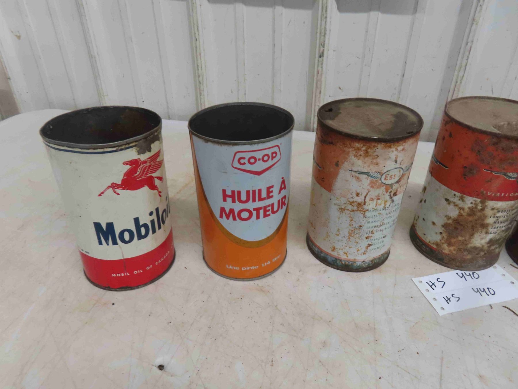 7 Quart Oil Cans : Mobil Oil, Co Op , Esso Aviation, Enarc,
