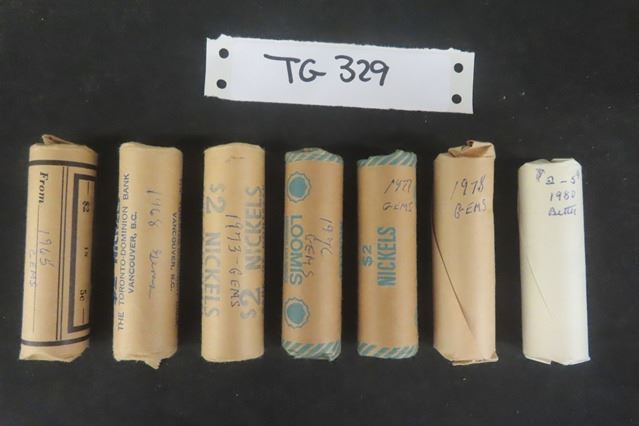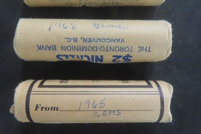 7 Rolls of Canada 5 Cent Coins 1965, 1968, 1973, 1976, 1977, 1978, 1980 - All Gems - 40 Per Roll