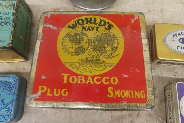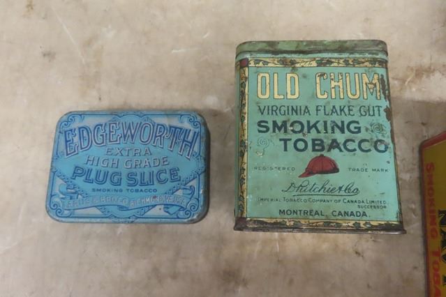 7 Various Cigarette Tins; Old Chum, Edgeworth, Buckingham, British Consoles , plus more