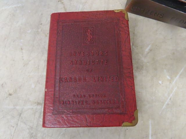 7 Vintage + Antique Savings Banks - Plastic, Metal, Pottery; 2 Banks have Original Boxes- 1 is Mechanical Bank