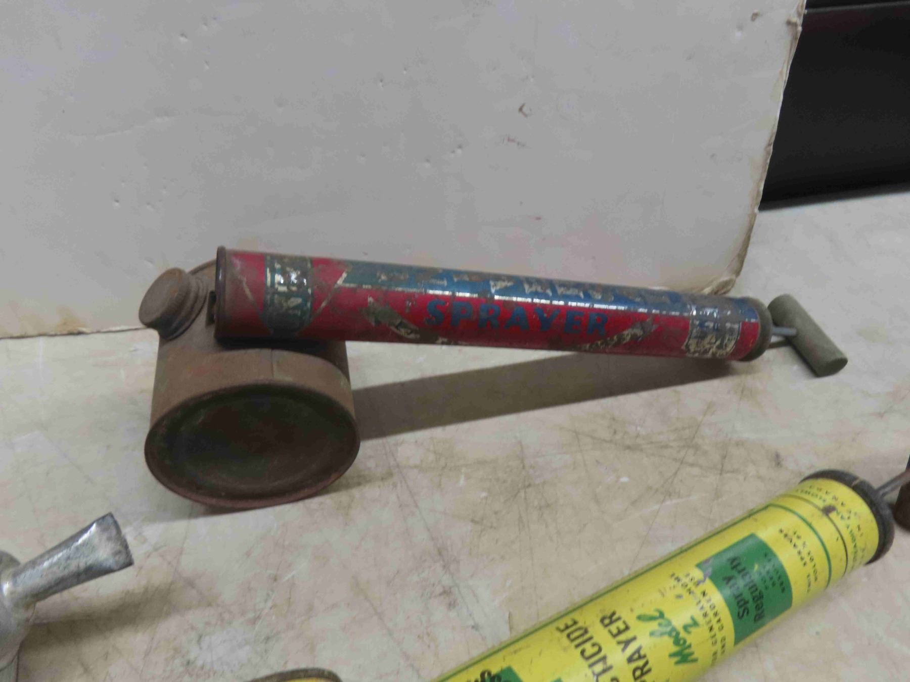 7 Vintage Bug Sprayers ; Rawleigh's, Scotts Cure, Watkins, Green Cross, Hudson,