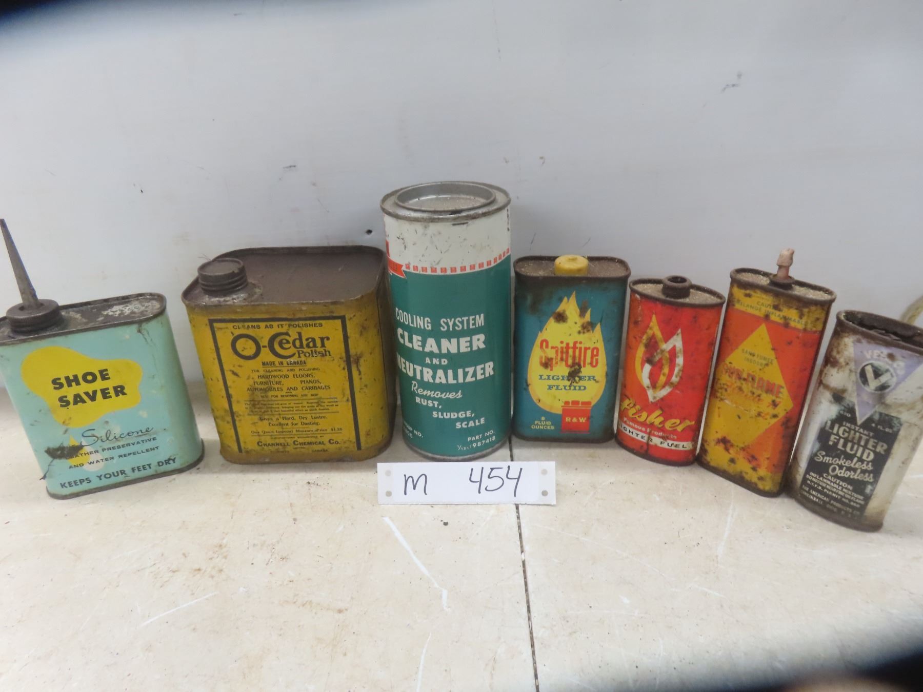 7 Vintage Tins, Lighter Fluid, Cedar Polish, Shoe Saver